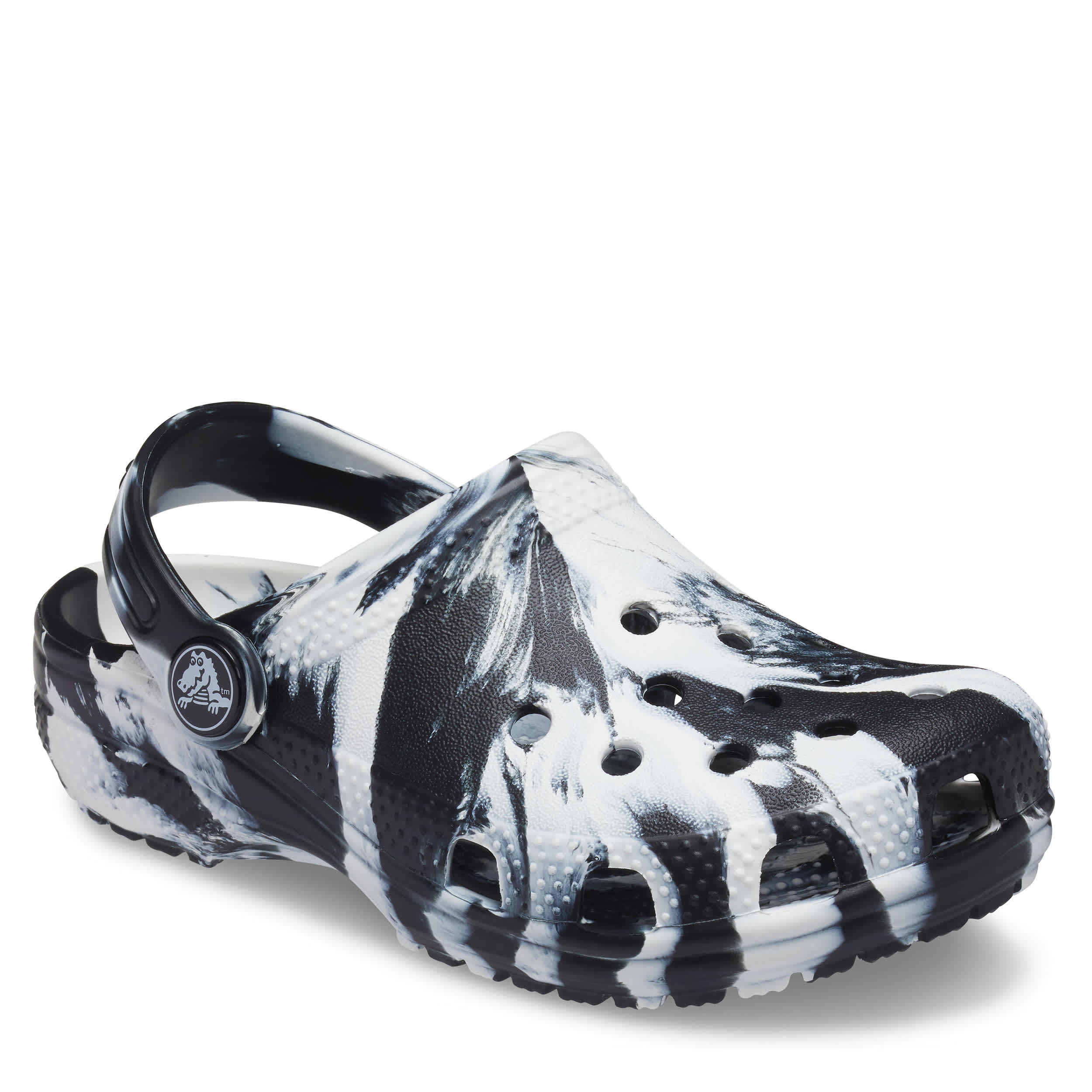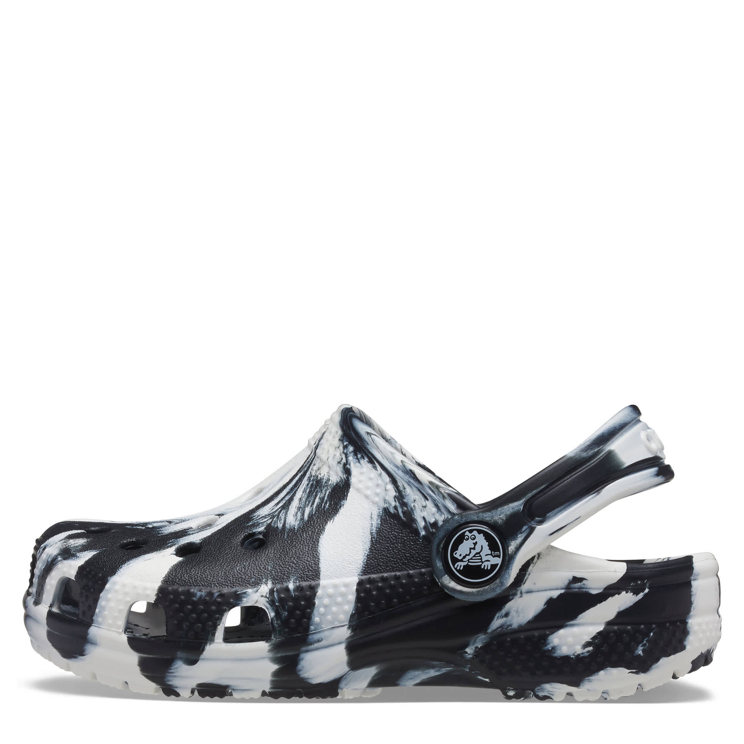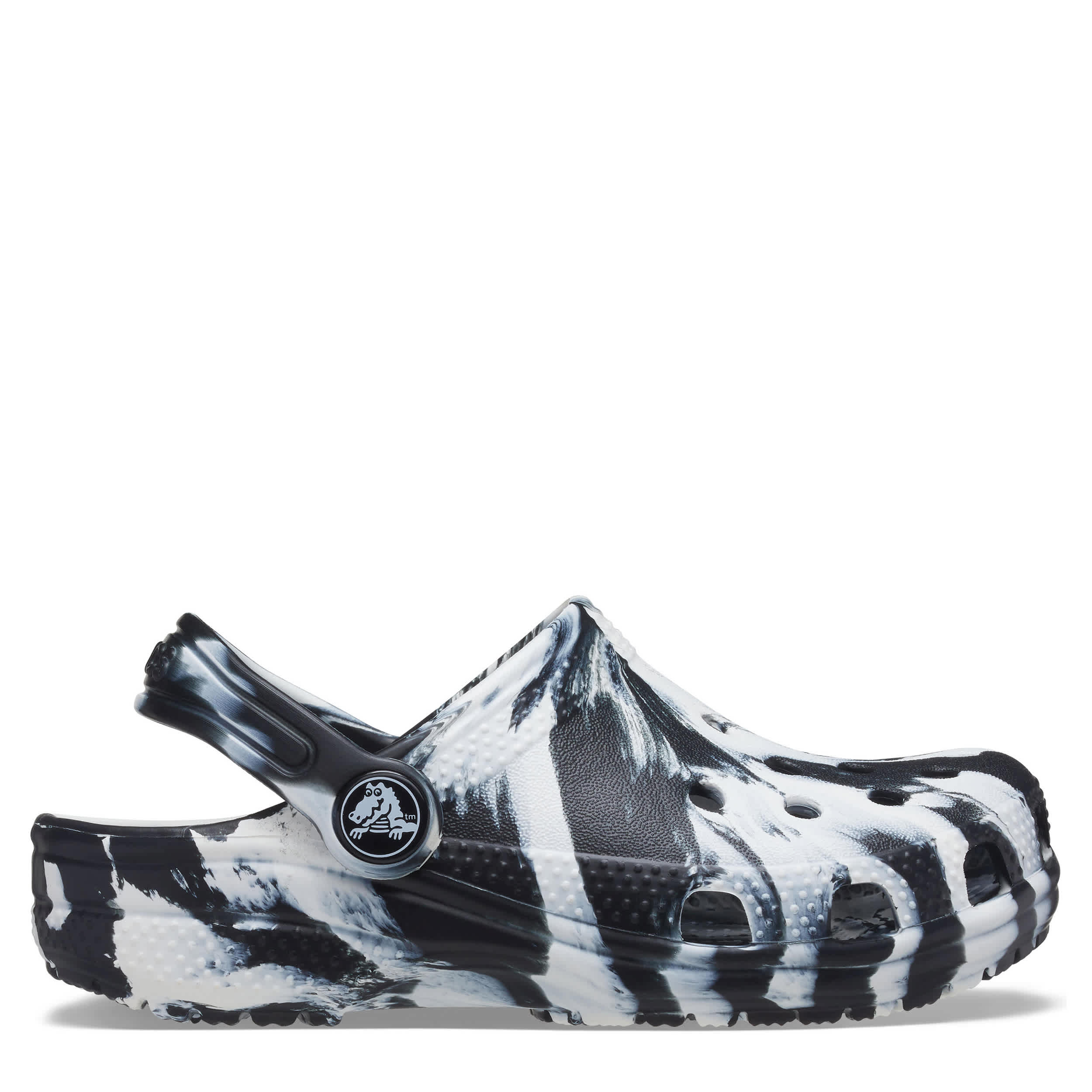 He can't go wrong with the ClassicMarbled infant boys' clog by Crocs. The Iconic Crocs Comfort material offers lightweight, flexible cushioning and a gentle massaging sensation, while the well-ventilatedmarbled upper circulates air for a cool, dry fit in these black and white Crocs.
