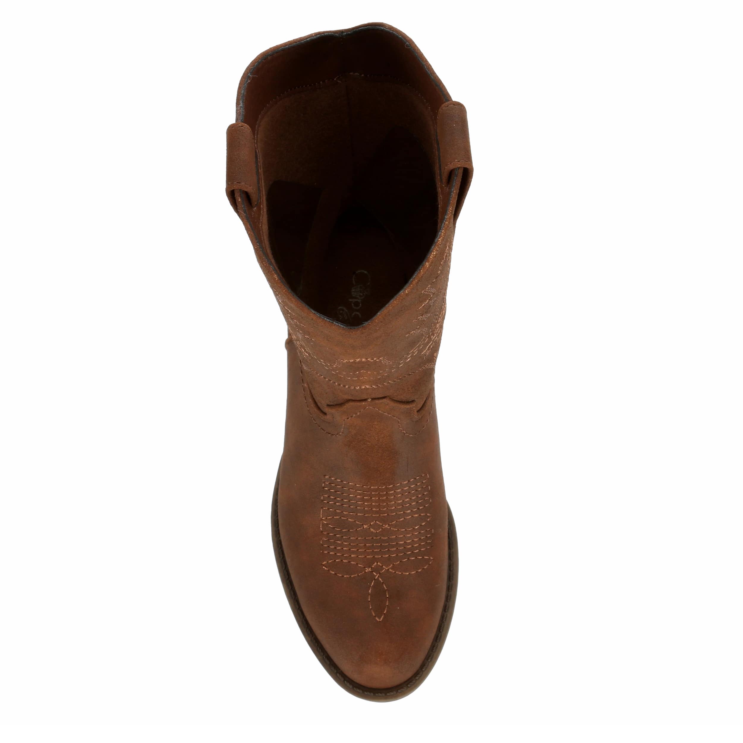 The classic details of a true cowgirl boot shine through in this Shelby girls' boot by Cupcake Couture. She'll love the 1! heel, the stitching details and almond-shaped toe, so she can show off her country side. The lightly cushioned insole and slip-on design will surely make it one of her favorites.