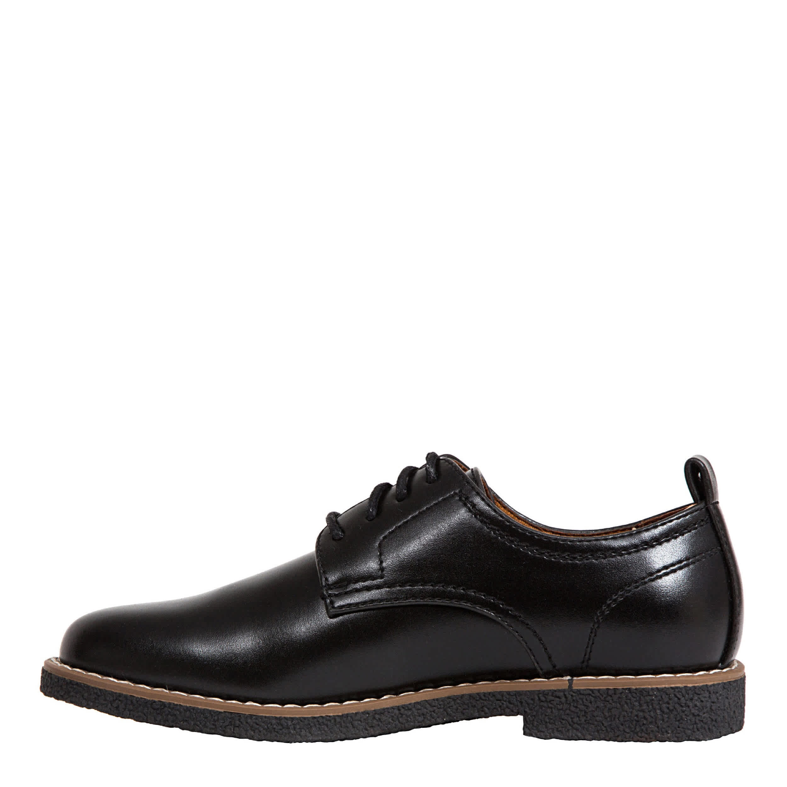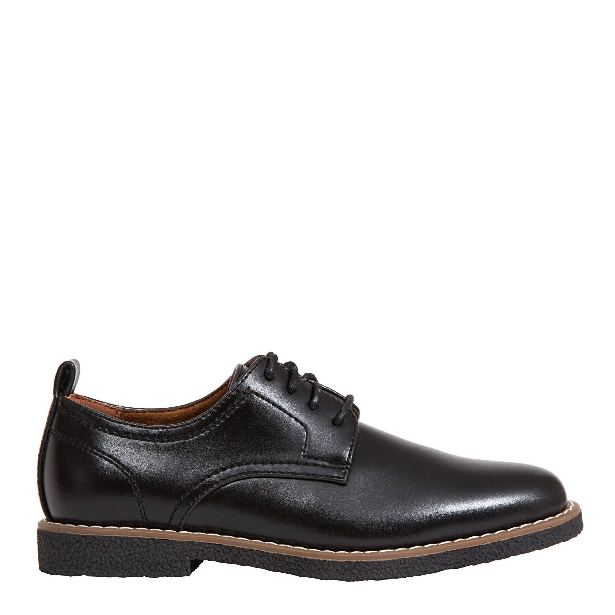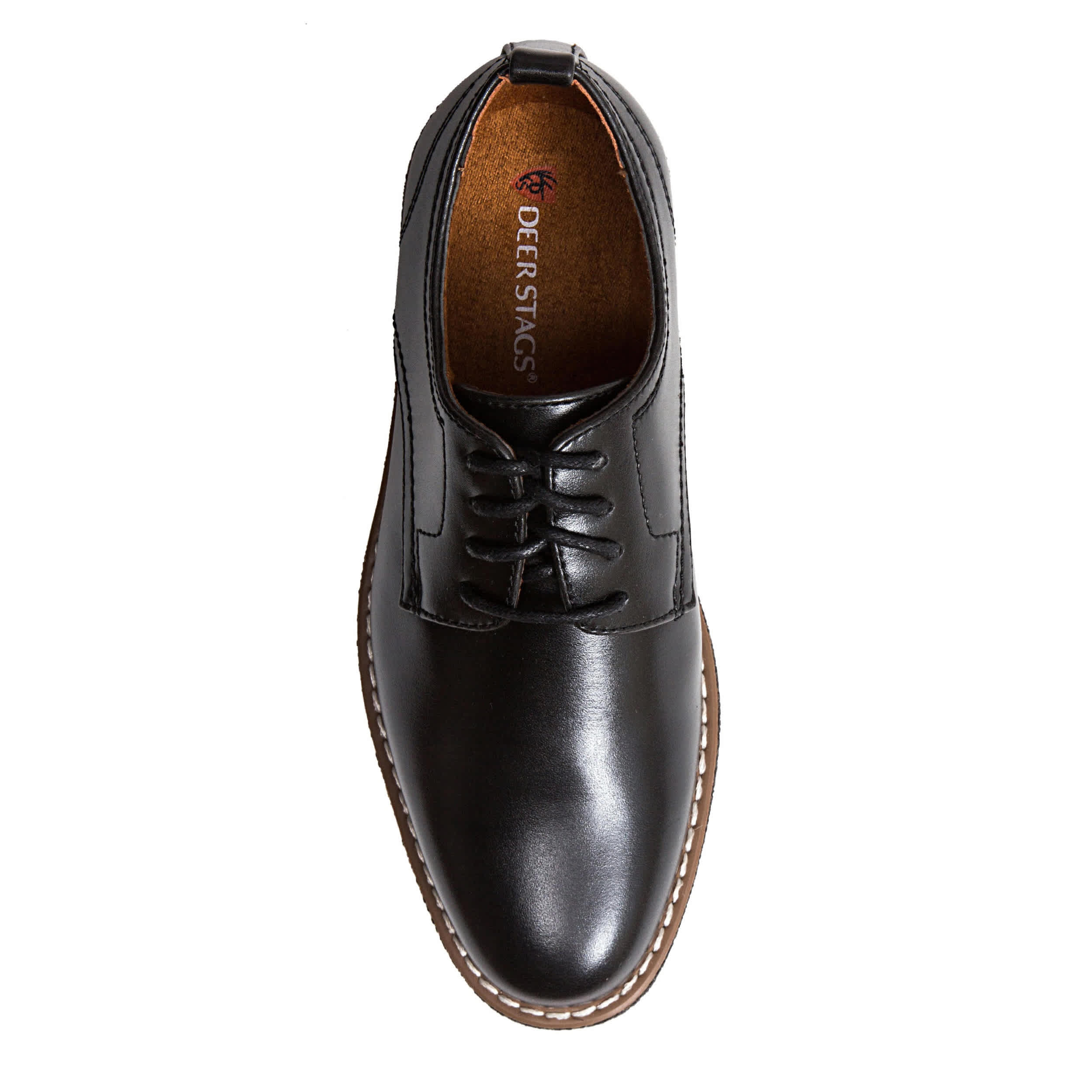 Looking sharp is easy with the Deer Stags Zander boys' oxford. This dress shoe features a faux leather upperwith a derby-style construct and a lace-up closure. A Memory Foam insole cushions his feet keeping him comfortable for hours.