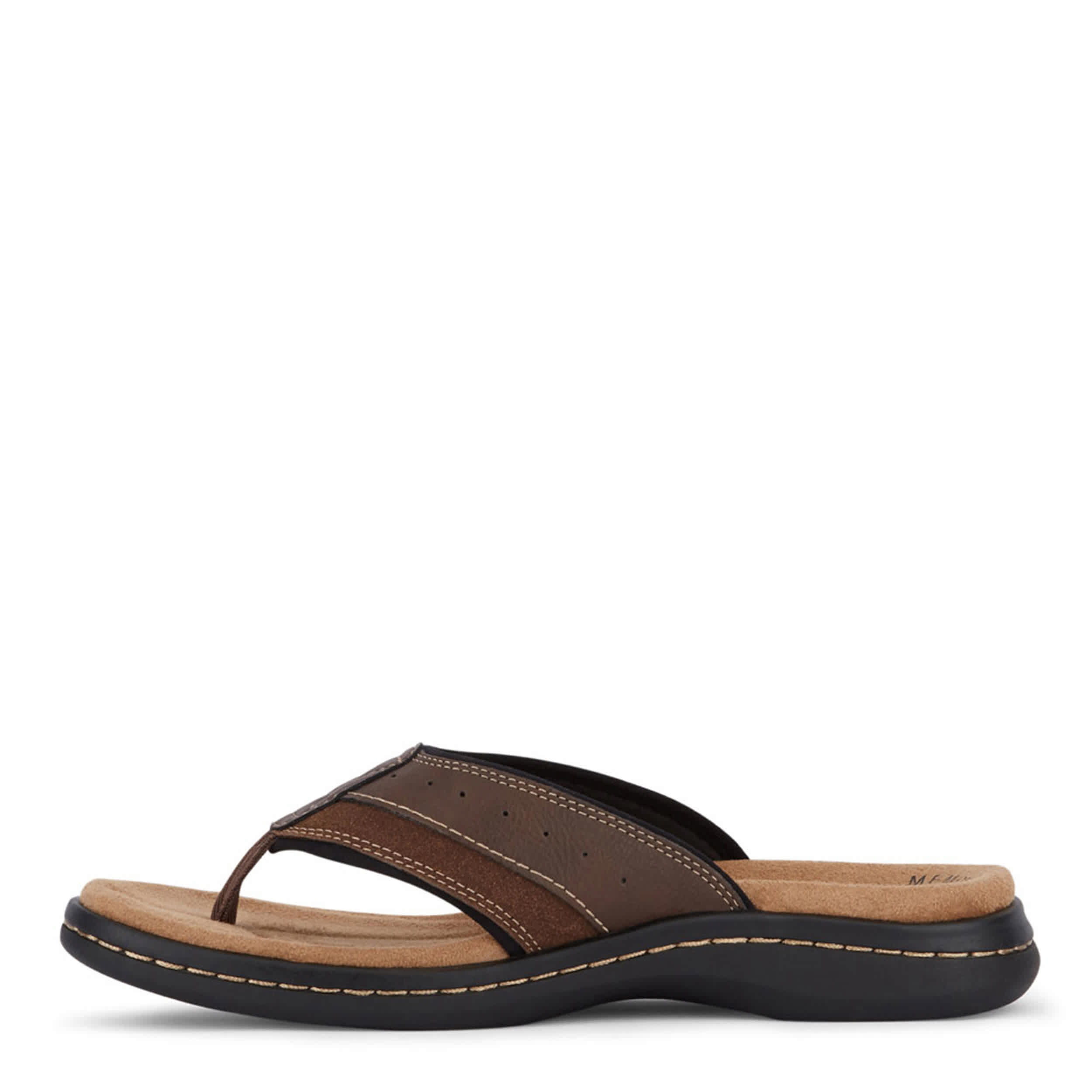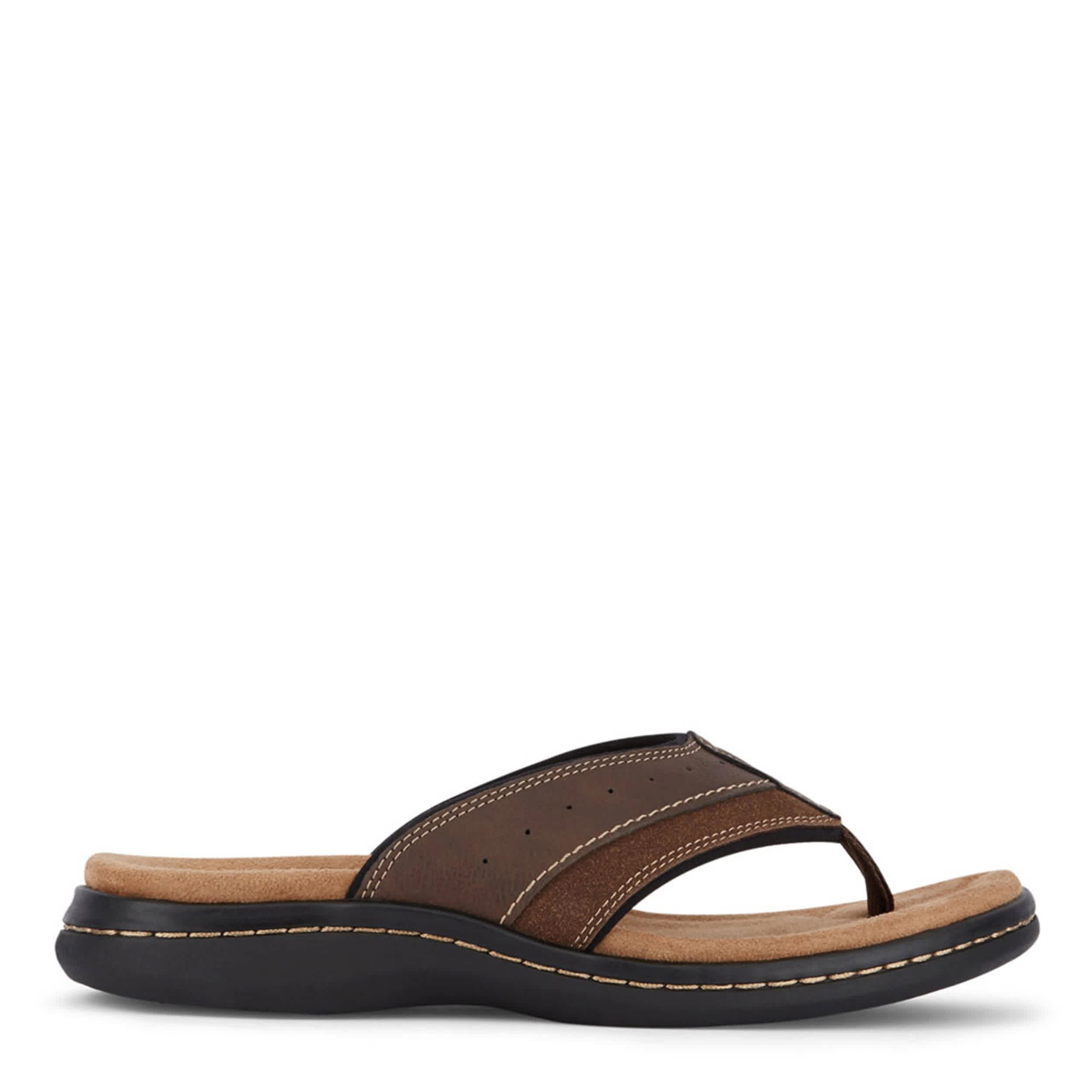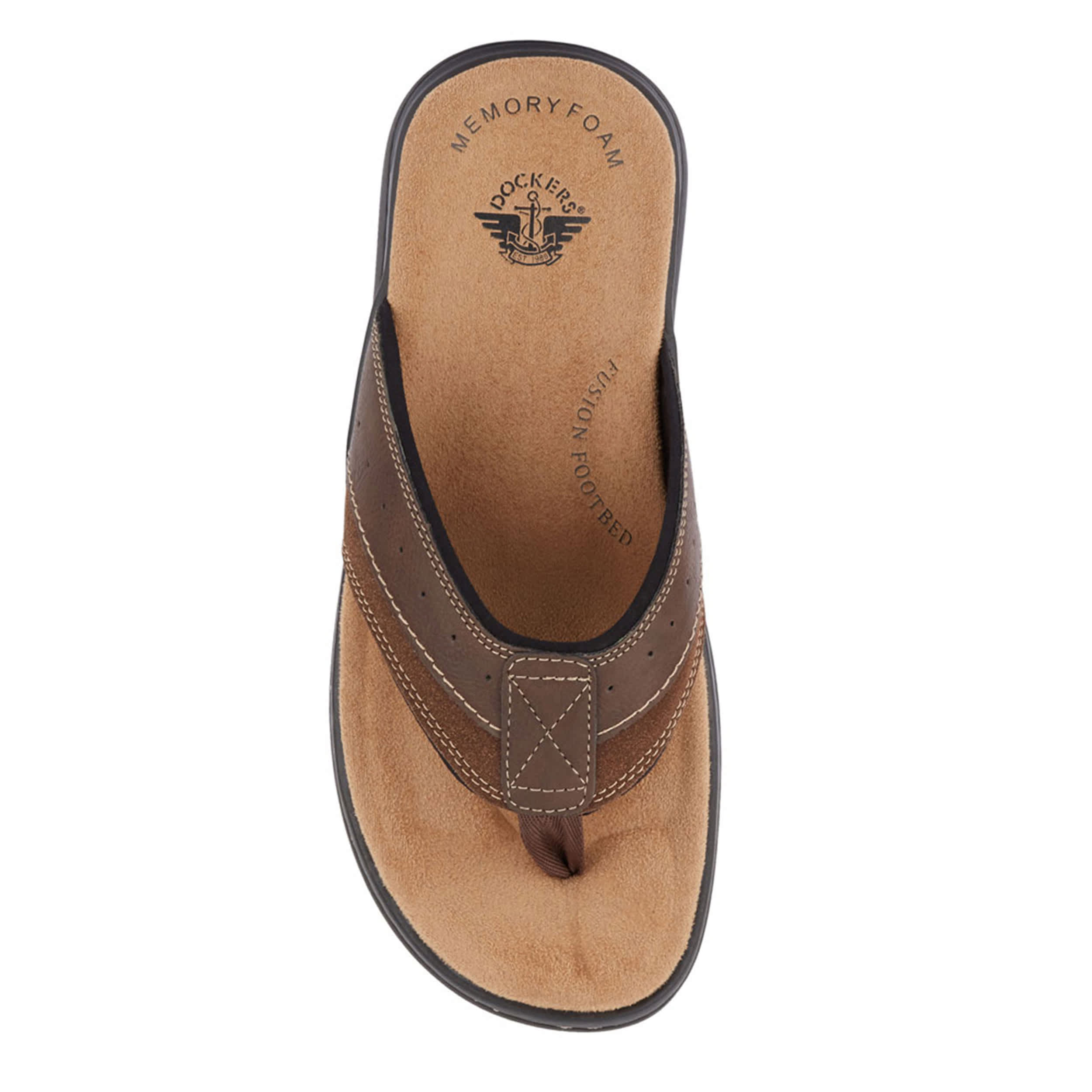 Revamp your summer style with the Laguna men's flip flop sandal from Dockers. With a distressed faux leather upper featuring a thong toe post for a secure fit, this laid-back sandal is perfect for lounging by the pool. A Memory Foam insole with a Fusion Footbed cushions your feet, while the durable rubber outsole provides plenty of flexibility.