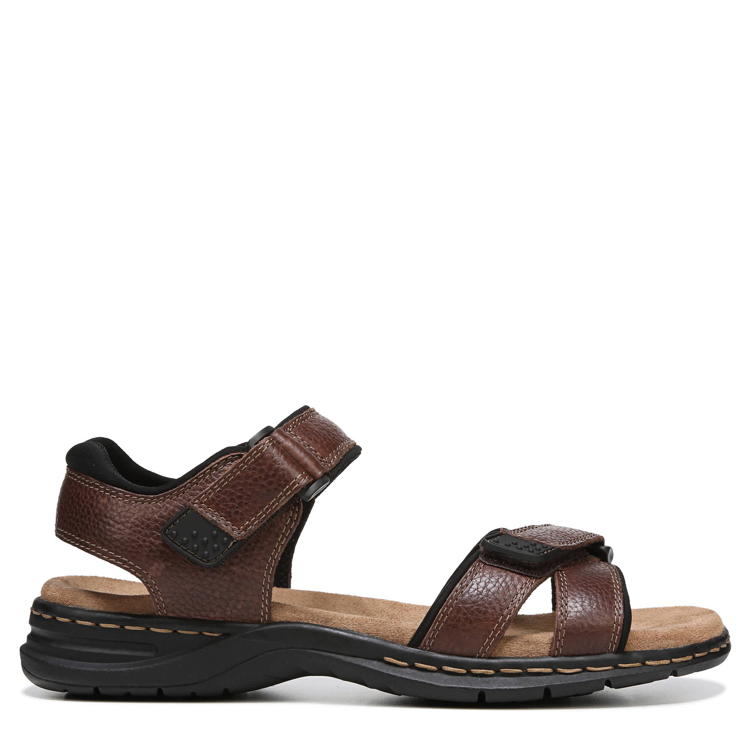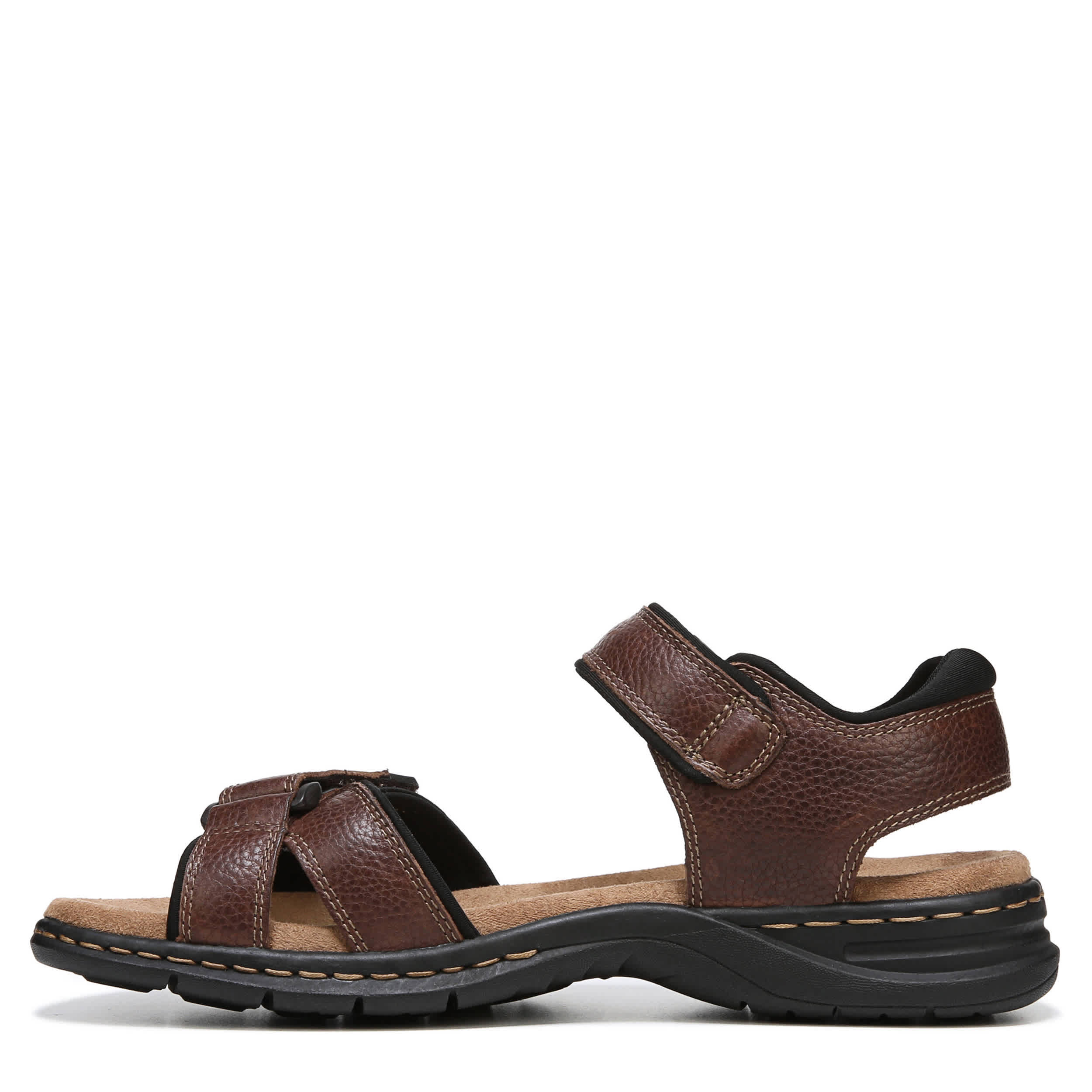 Casually sporty is still stylish in the Dr. Scholl's Gus men's outdoor sandal. With a leather upper featuring contrast stitching details for extra style, this hook & loop strap sandal has a neoprene lining for a great feel that'll take you wherever the weekend flows. The Memory Foam insole cushions every step while the traction sole resists slipping.