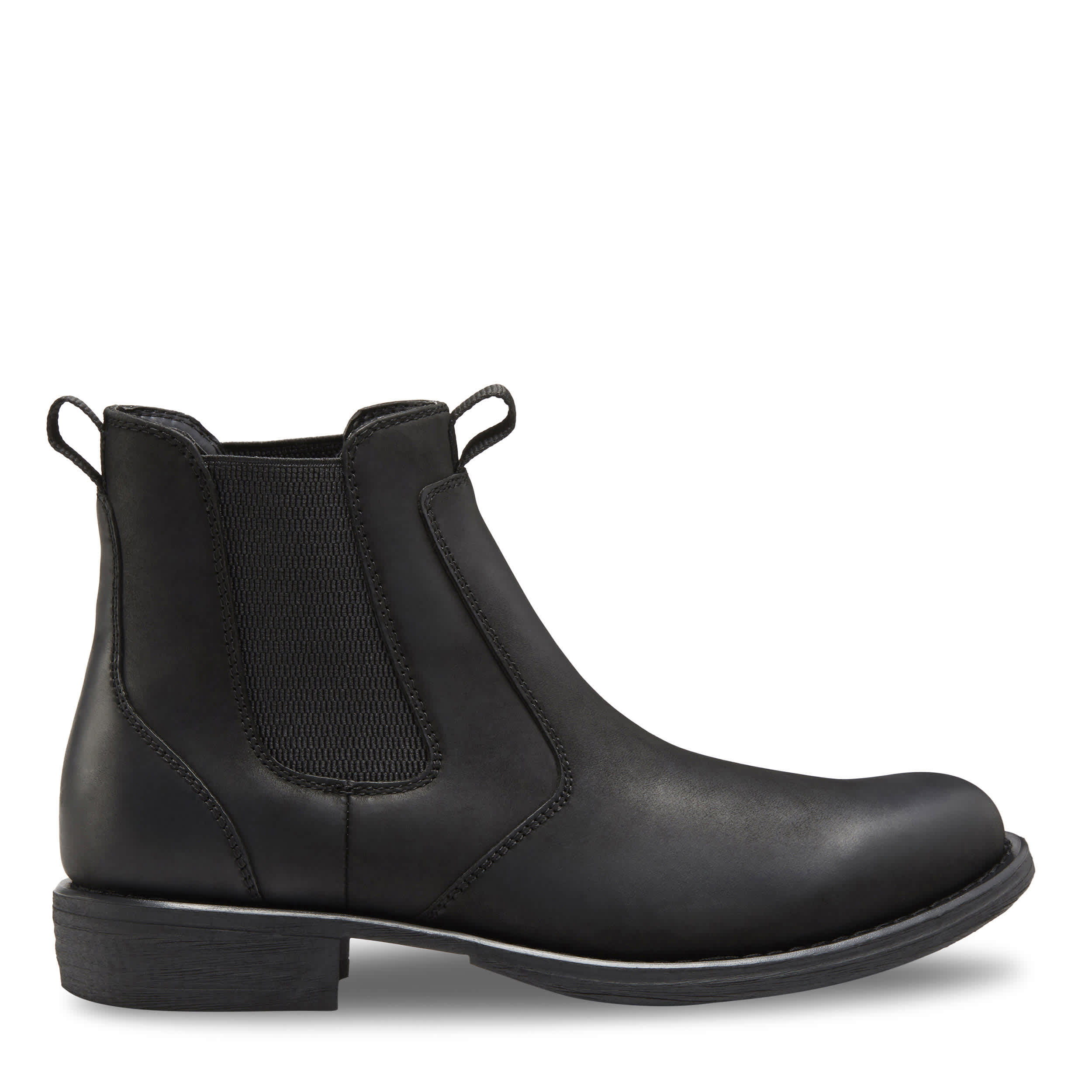 Stylishly trudge through your day in the Eastland Daily Double men's Chelsea boot. With a leather upper and dual elastic panels for a secure fit, this pull-on boot also features a fabric lining and dual pull tabs for easy entry. The cushioned footbed comforts your foot while the TPR rubber sole durably provides traction.