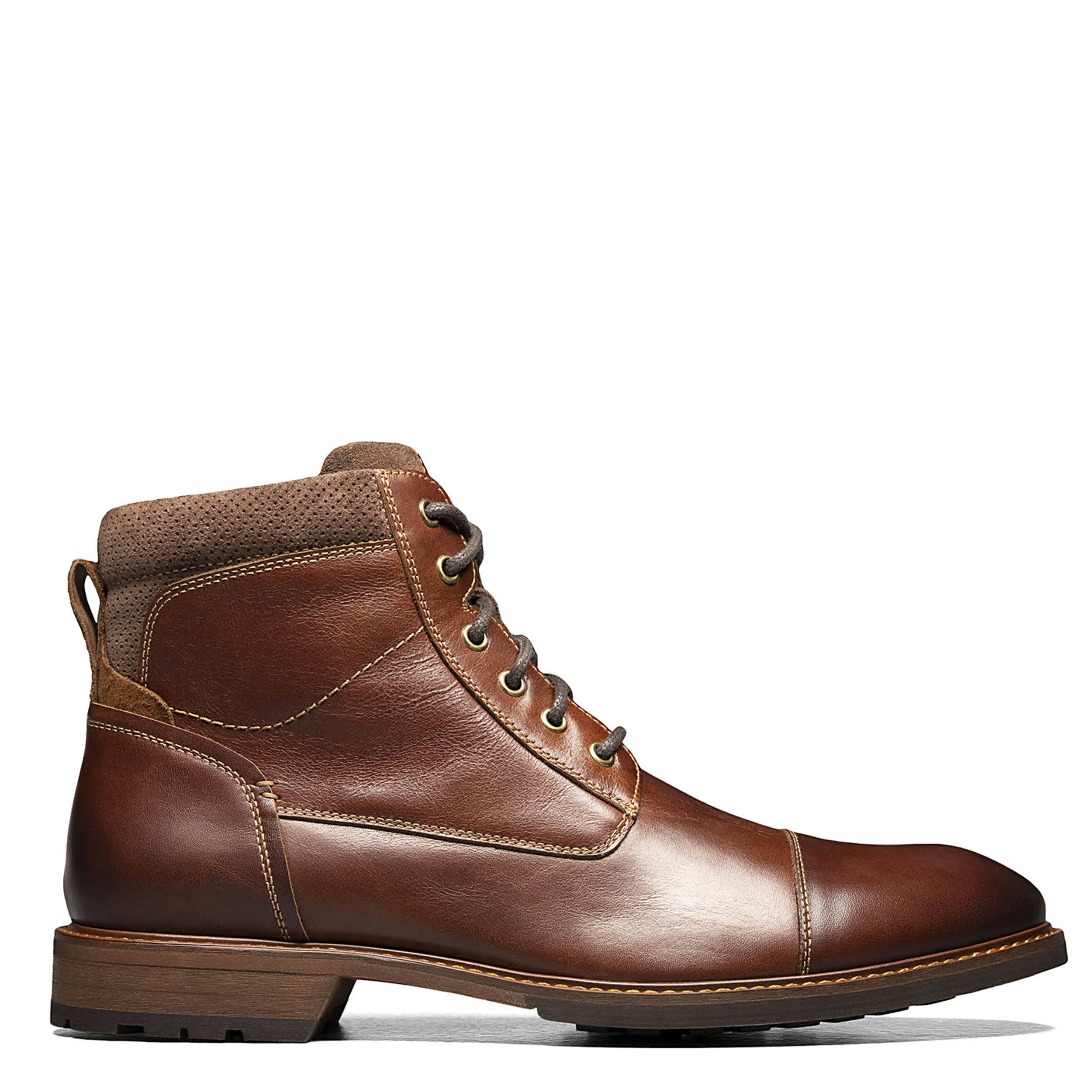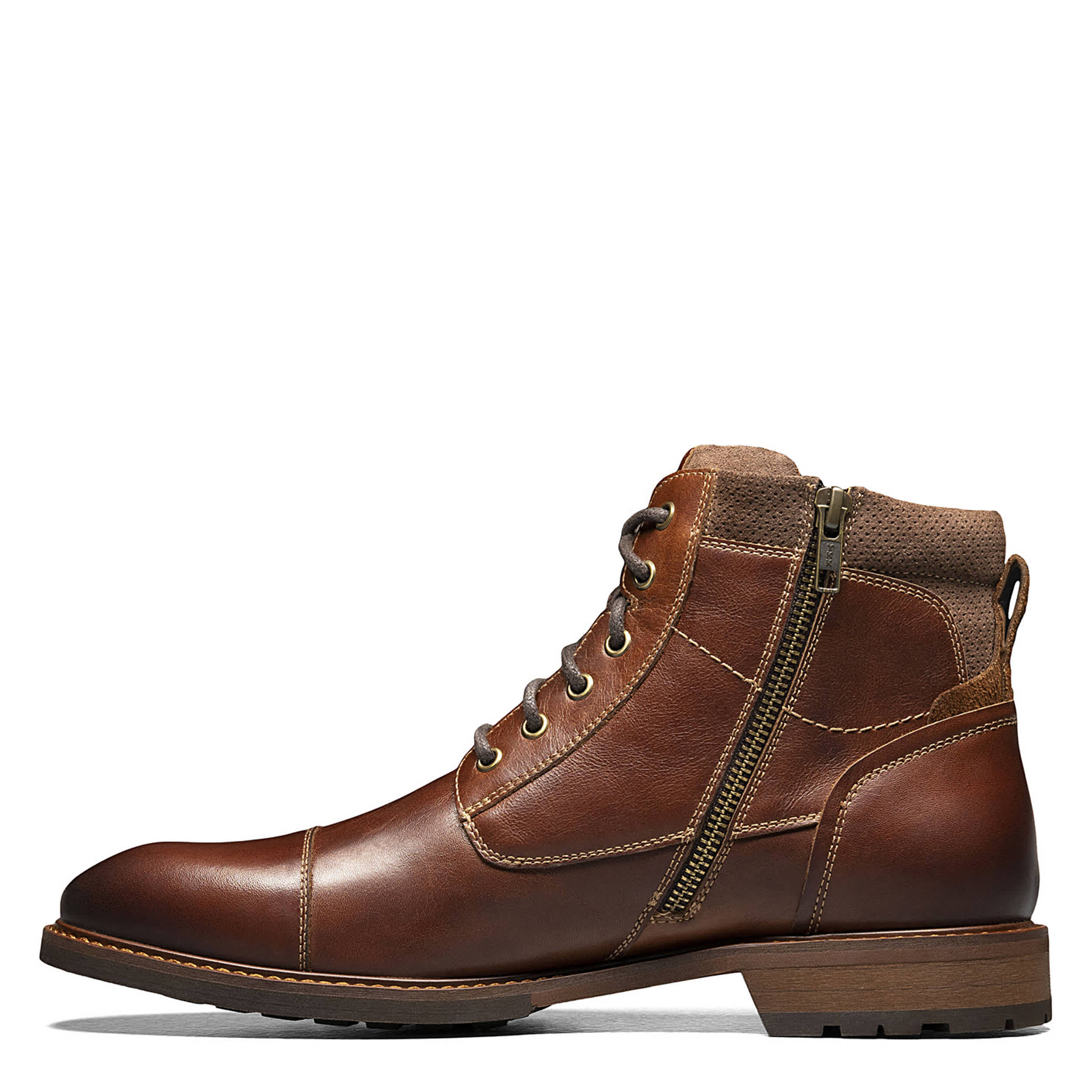 Dress confidently with the Florsheim Lodge Cap Toe L boots. Looking good under jeans or a business casual look with cap toe, premium stitching, and lace-up closure. Slip into them quickly with side zipper and cushioned insole for comfortable wear.