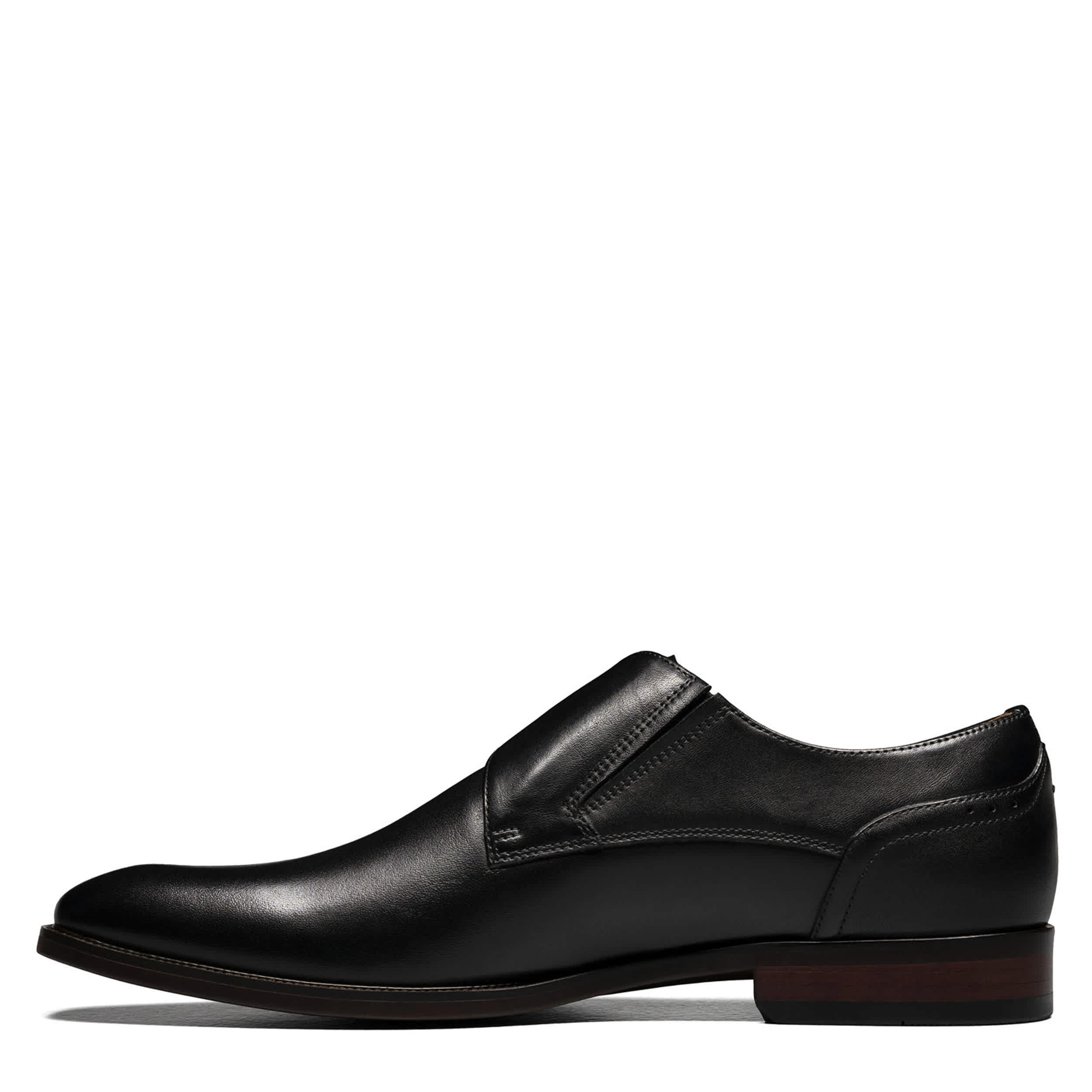 Amplify your handsome in the Florsheim Sorrento Plain Toe men's dress shoe. With a leather upper and monk strap buckle, this slip-on dress shoe cuts quite the dashing figure. The cushioned footbed and synthetic outsole supplies comfort and stability while you put your best foot forward.