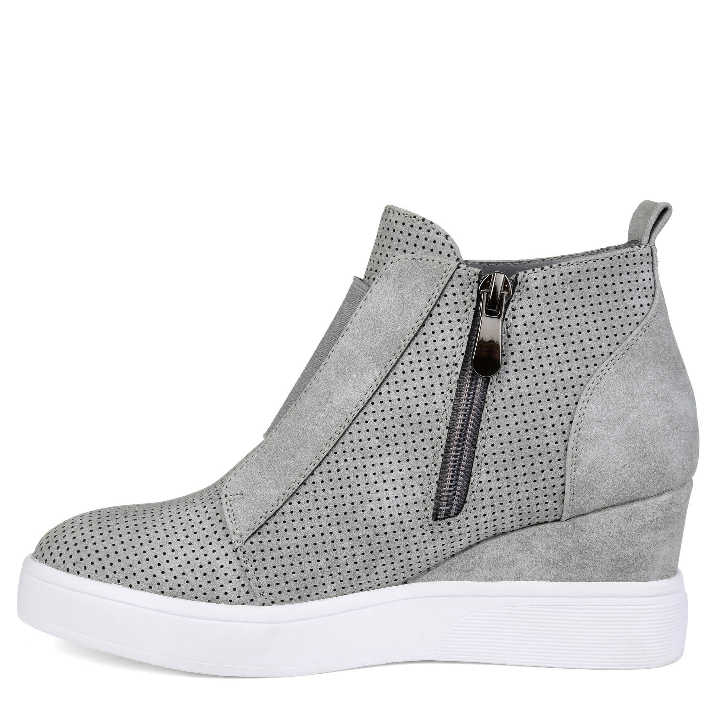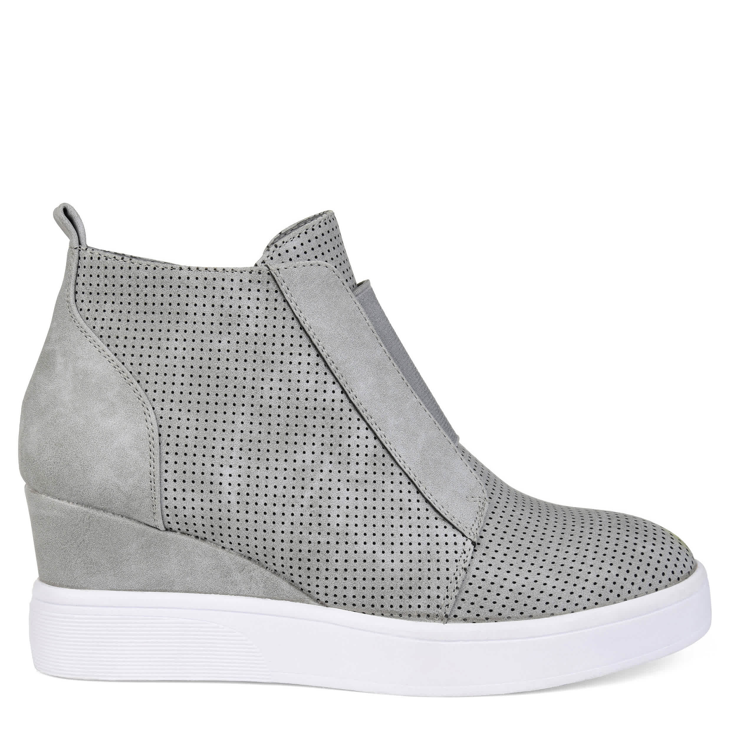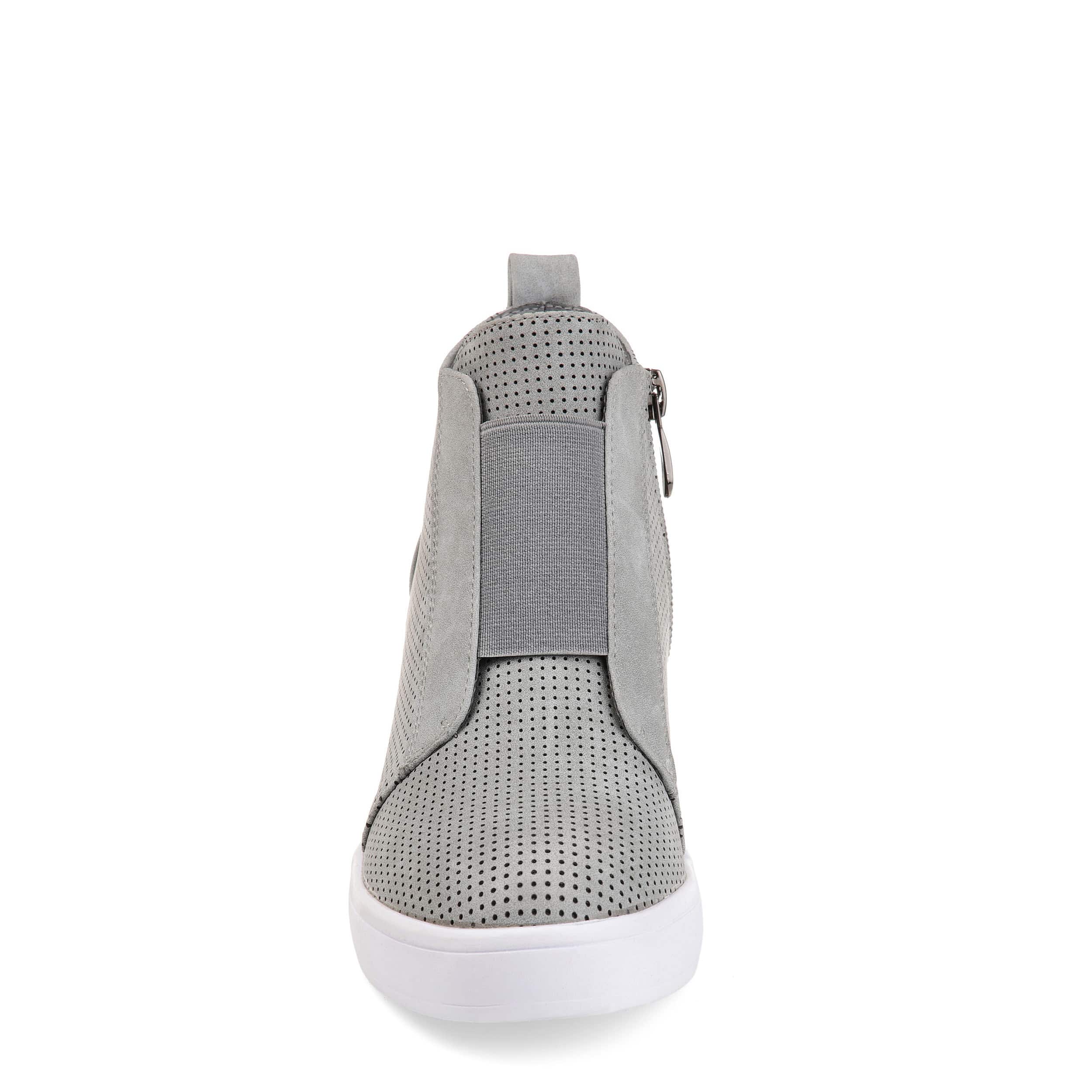 Stylishly update your sporty looks in the Clara wedge sneakers from the Journee Collection. With a 2½" covered wedge heel, these sneakers lift your fashion sense and offer ease of wear with an elastic panel that helps you slip into a comfy cushioned footbed.