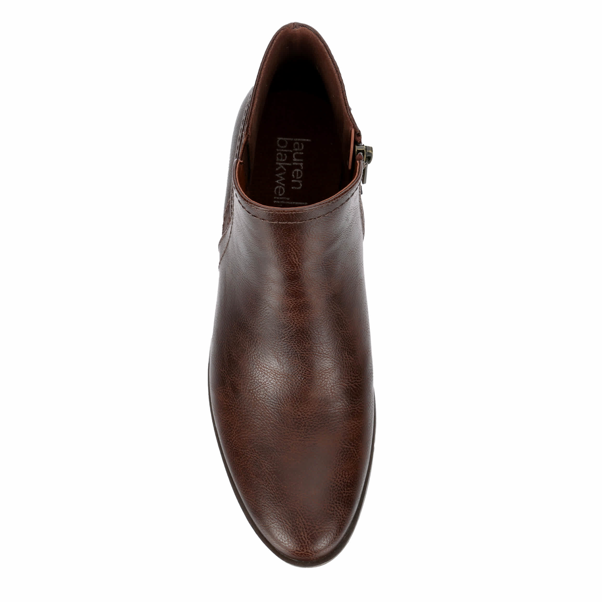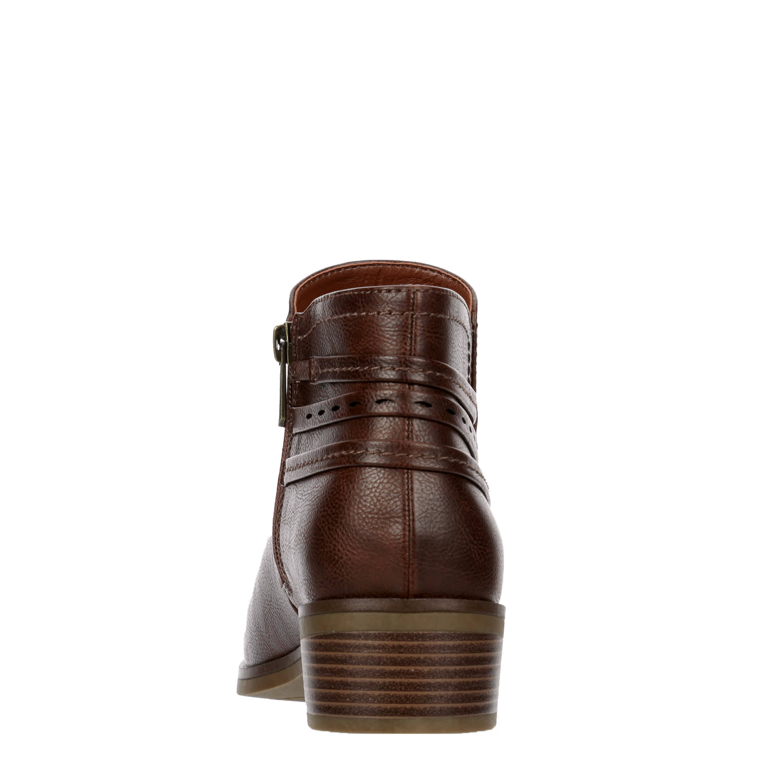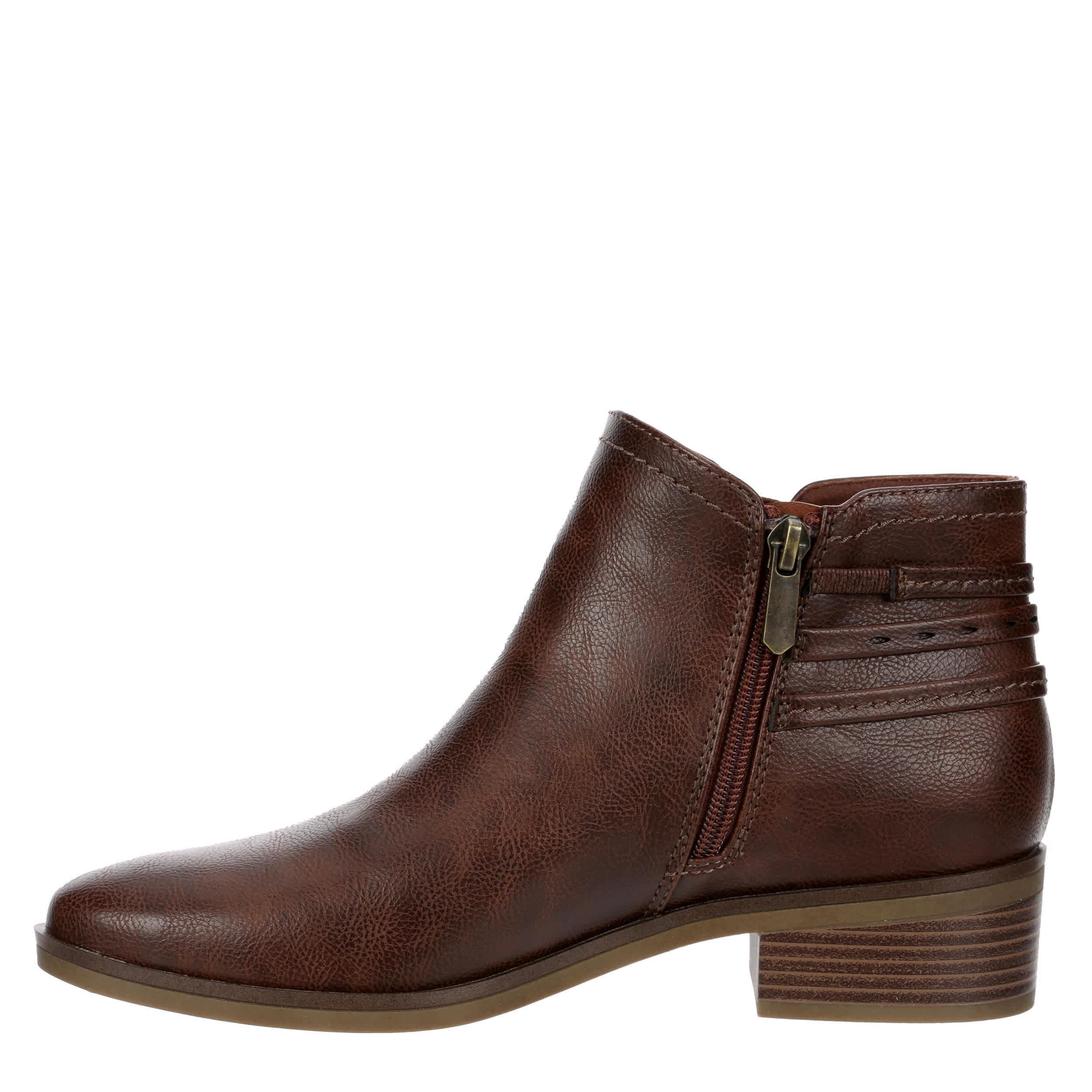 Casual style befits you in the Martha women's bootie from Lauren Blakwell. Featuring a faux leather upper with a decorative heel wraparound straps, this inside zip ankle boot looks great with your fall fashion. The footbed comforts your foot while the heel offers stable lift.