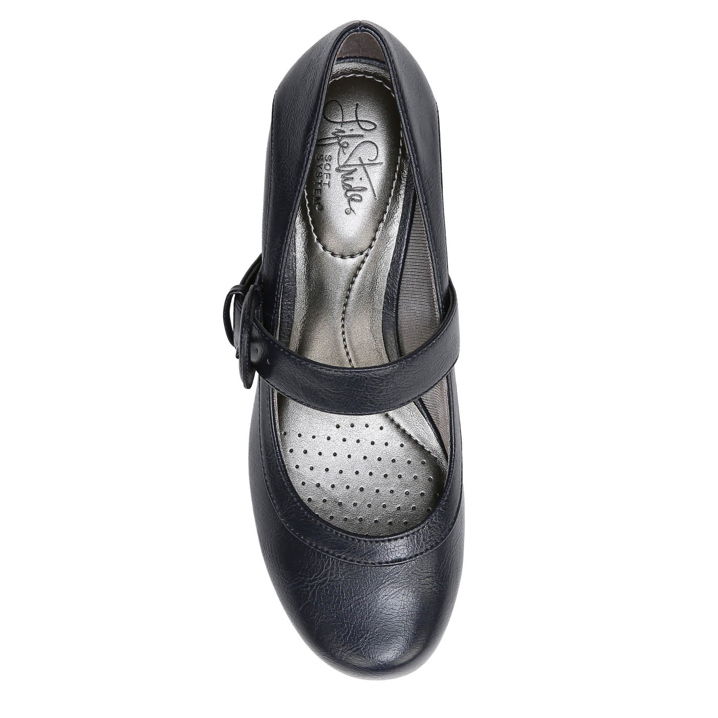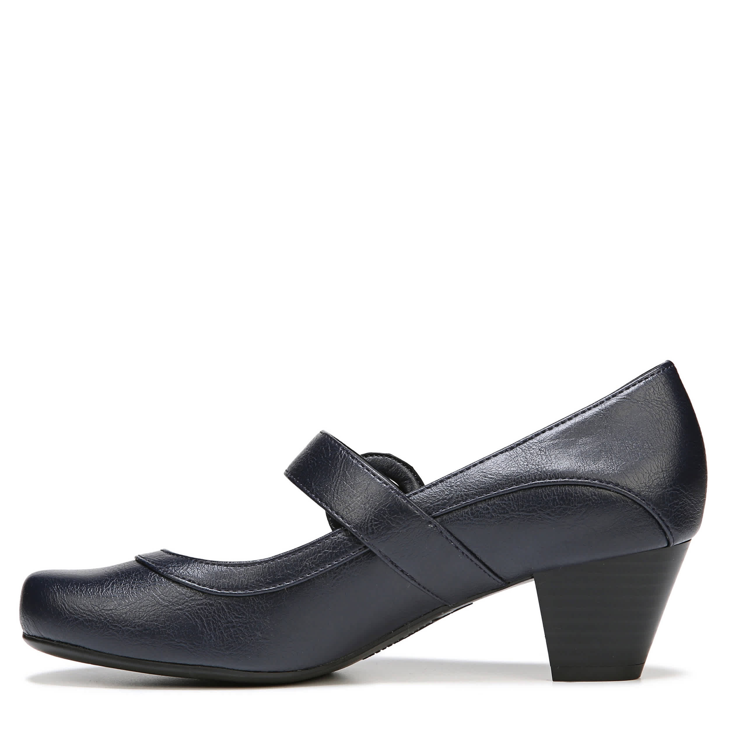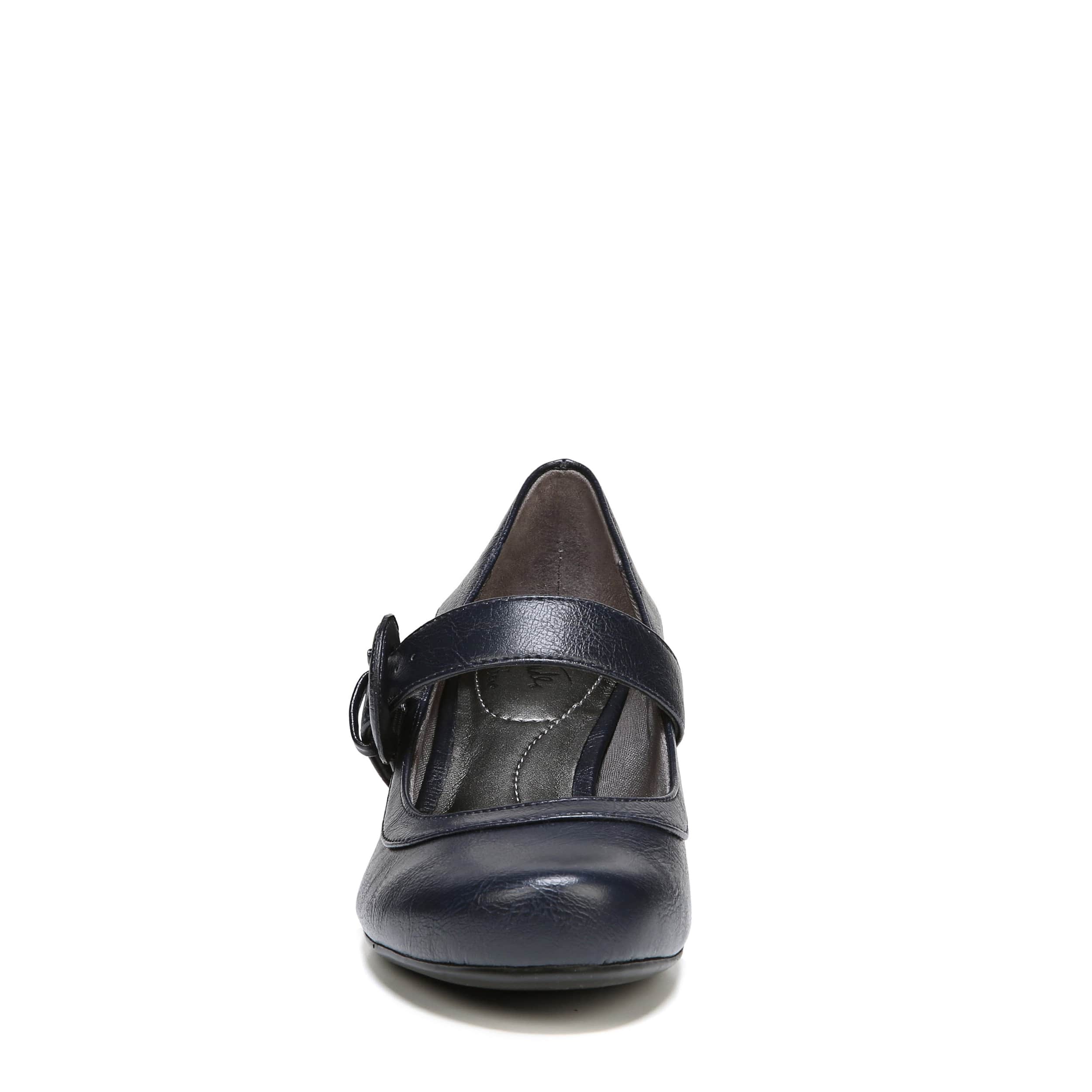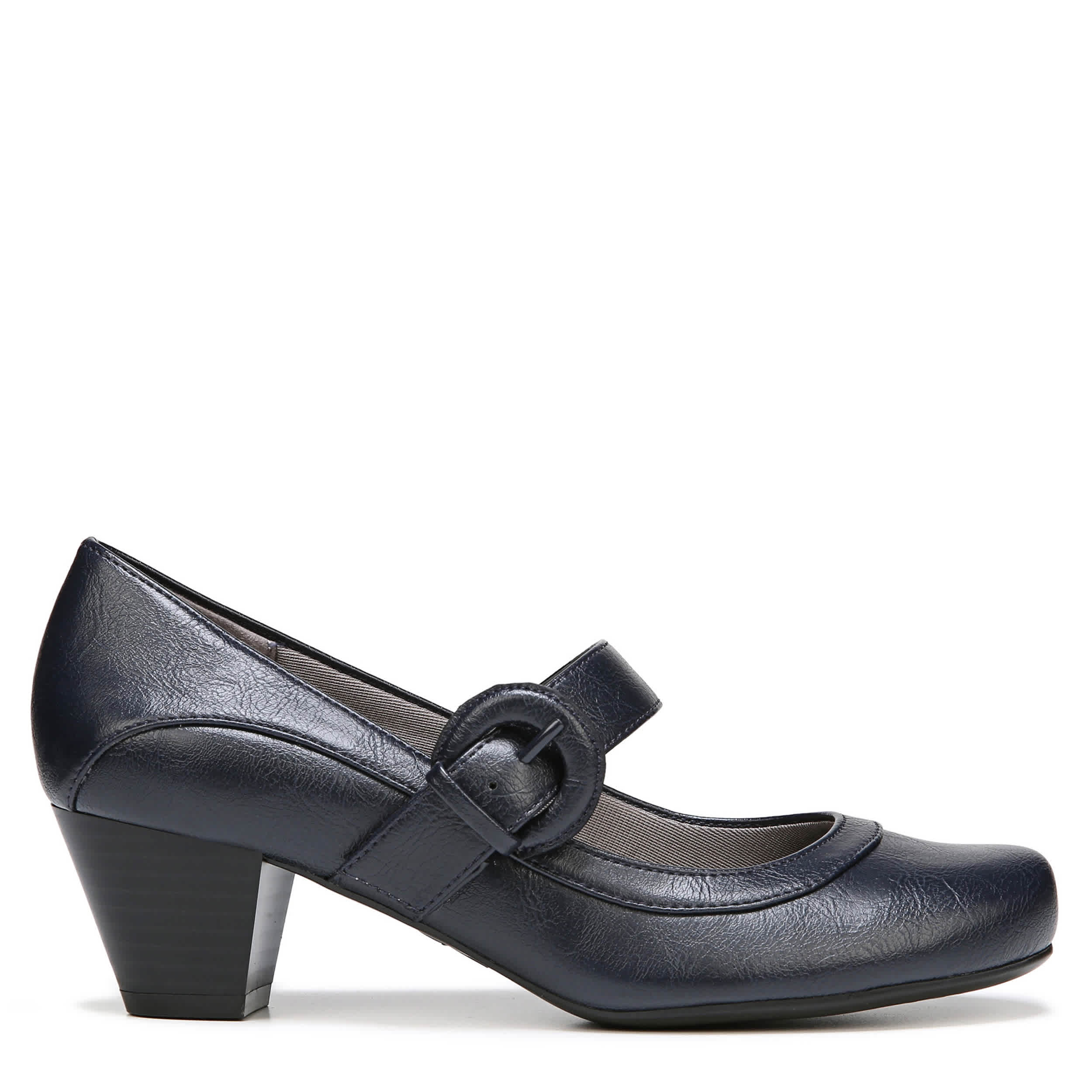 Cute and comfortable, the Rozz pump by Lifestride is everything you've wanted in a dressy shoe and more! The synthetic upper has a rounded toe with a monochrome adjustable buckle strap for a secure and comfortable fit. The Soft System® cushioning will support your foot for all-day wear while the 1 7/8" heel boosts your silhouette.