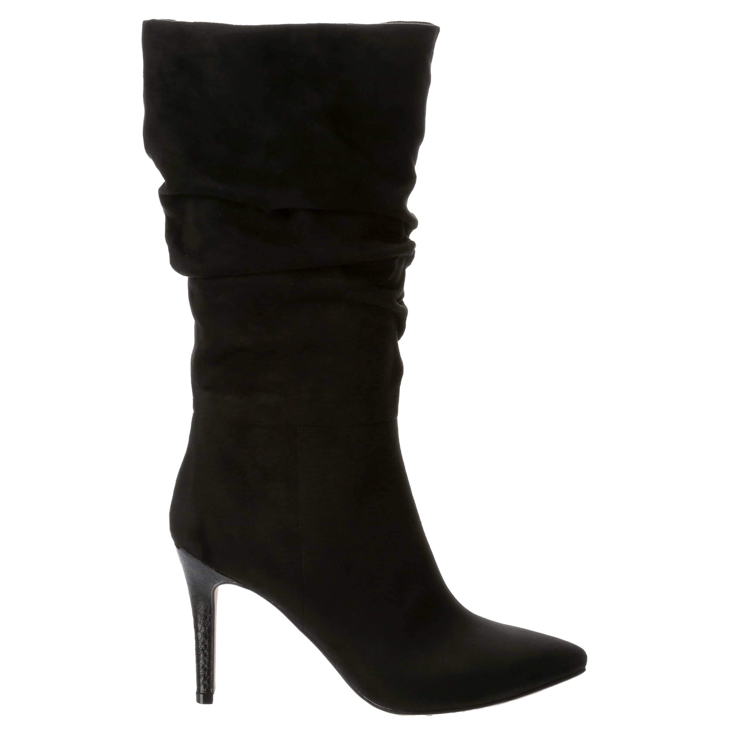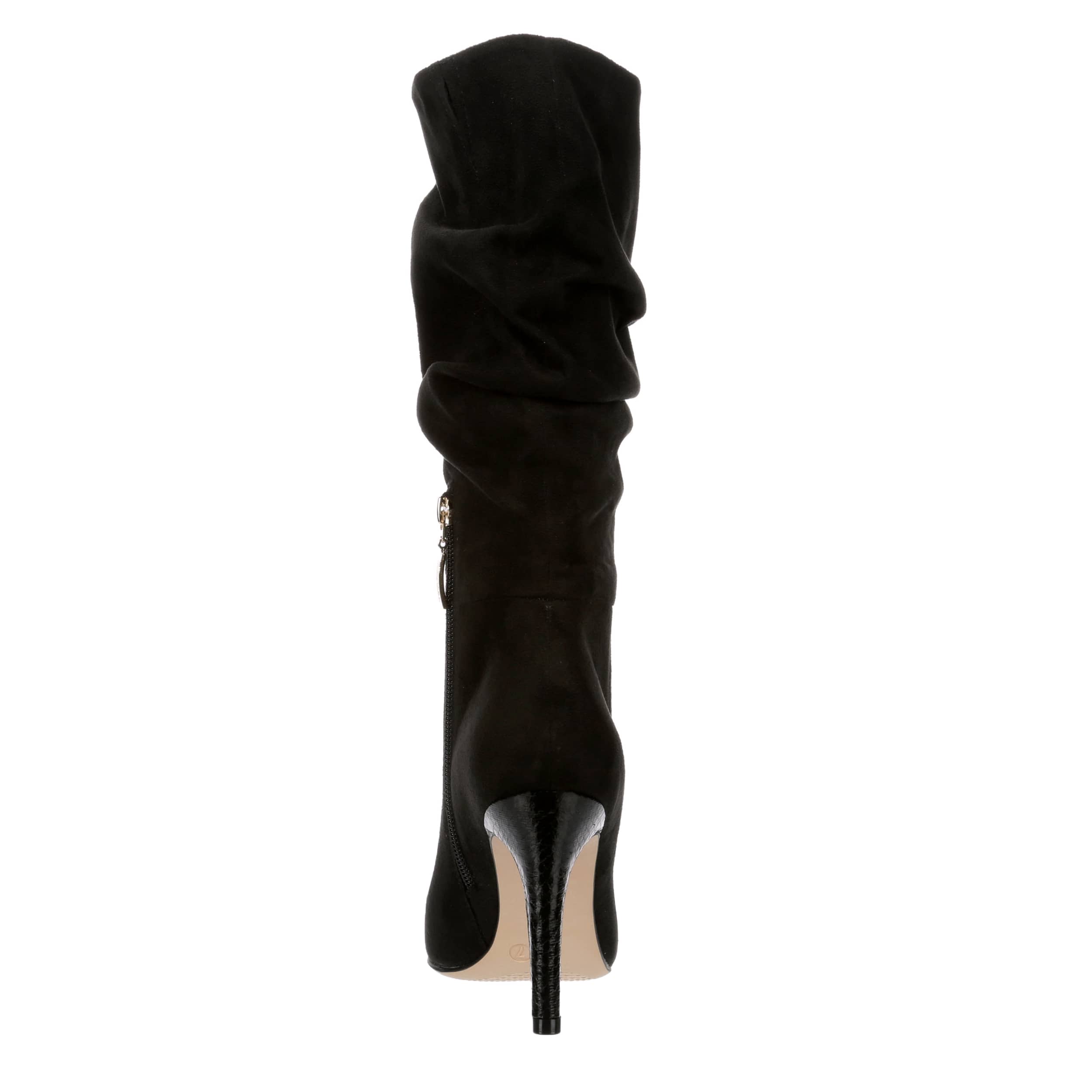 Never forget to dress the part in the Michael by Michael Shannon Iris women's dress boot. With a faux suede upper featuring a trendy slouchy style, this inside zip boot has class. The footbed soothes your foot while the stiletto heel calls attention.