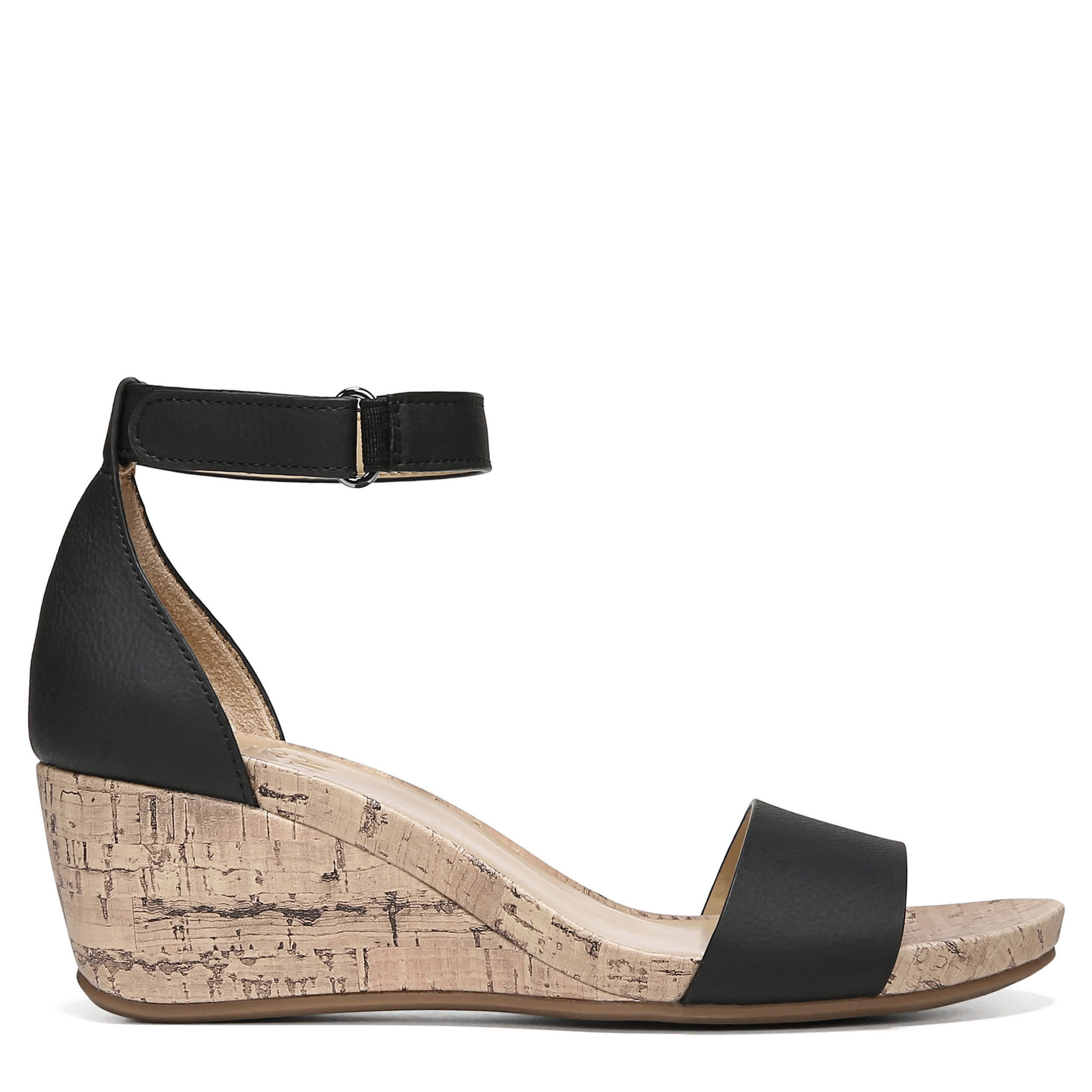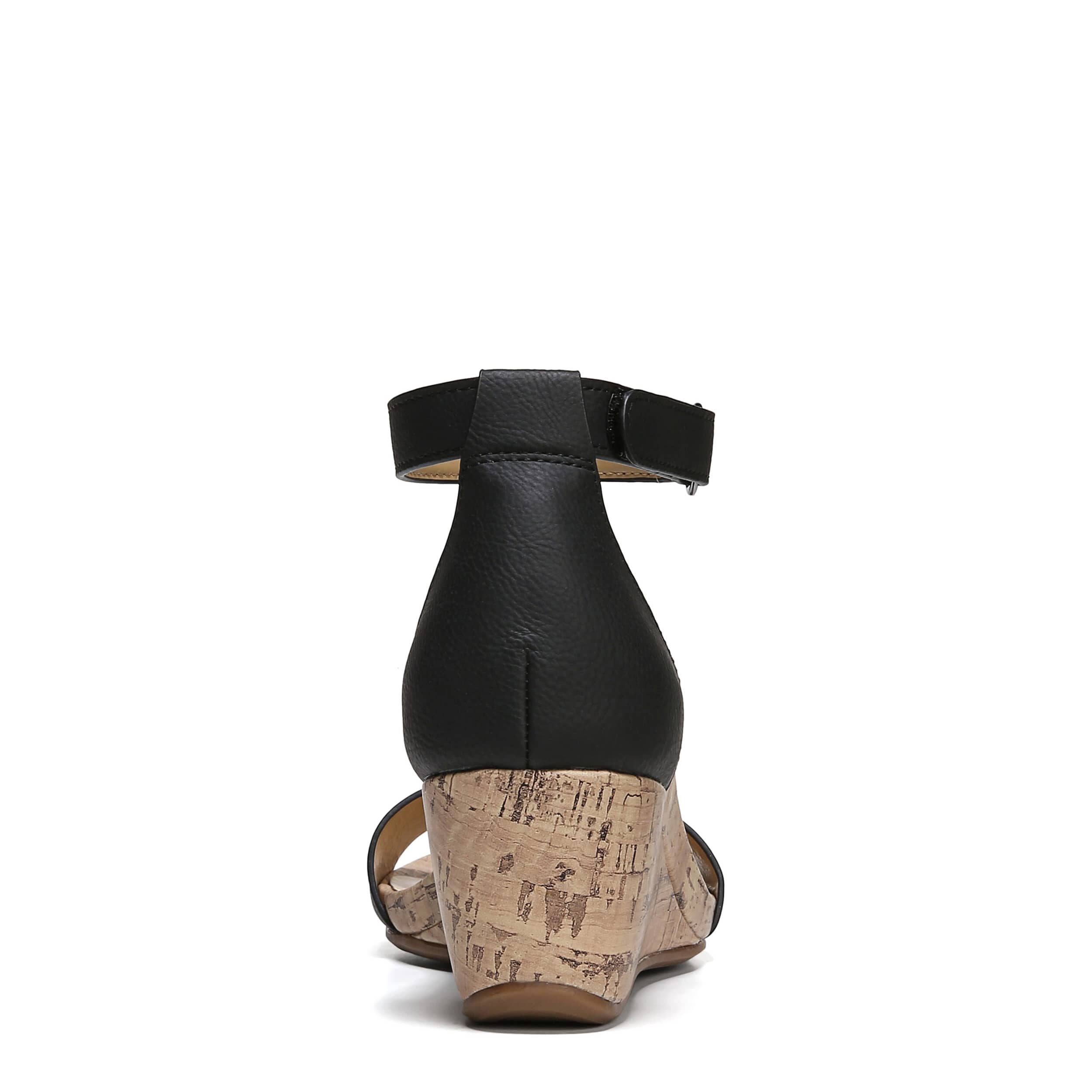 This Areda women's wedge by Naturalizer adds a touch of chic with this modern style wedge. The faux leather upper has an ankle strap that takes this wedge into high fashion status, while the cushioned insole will keep your foot comfortable with each step.
