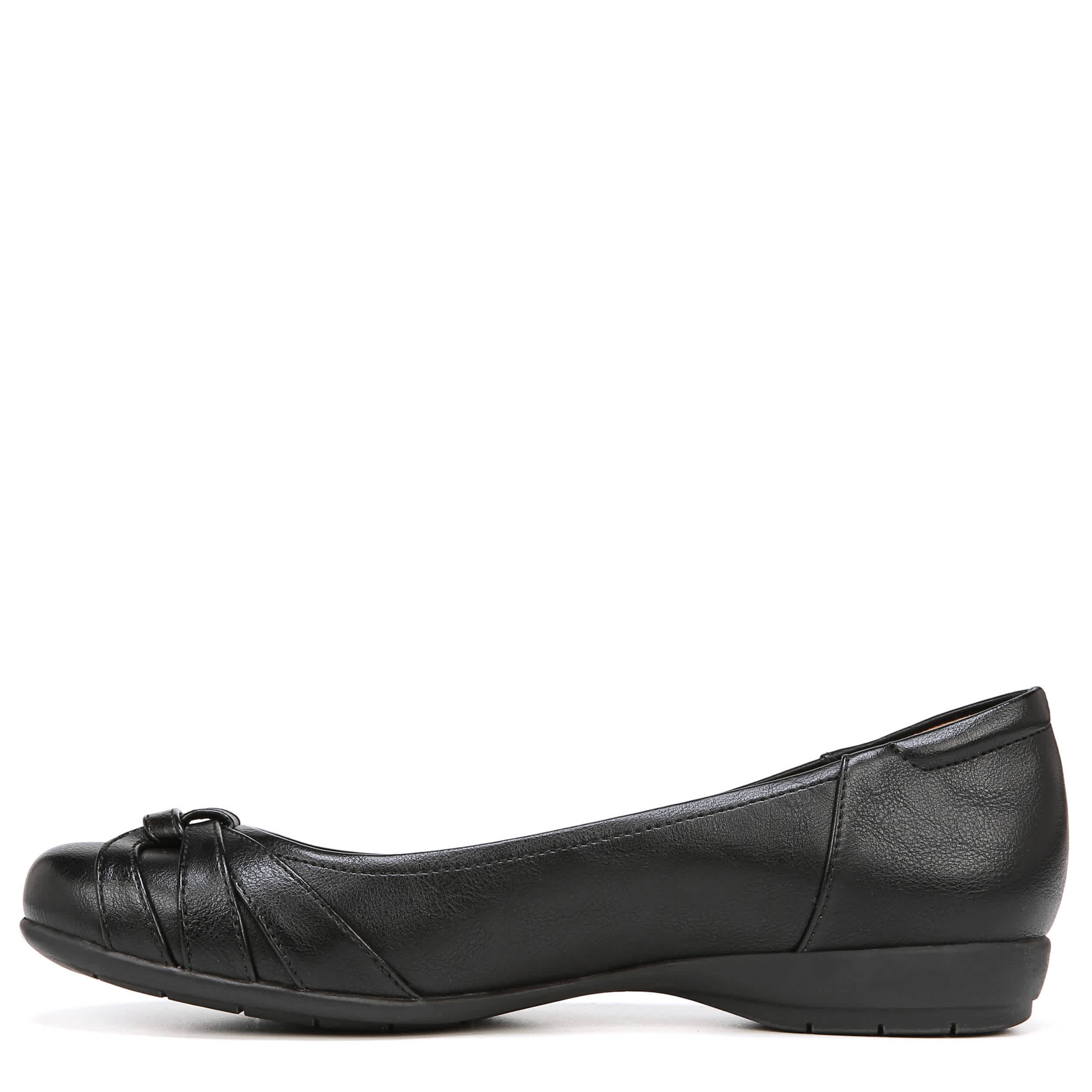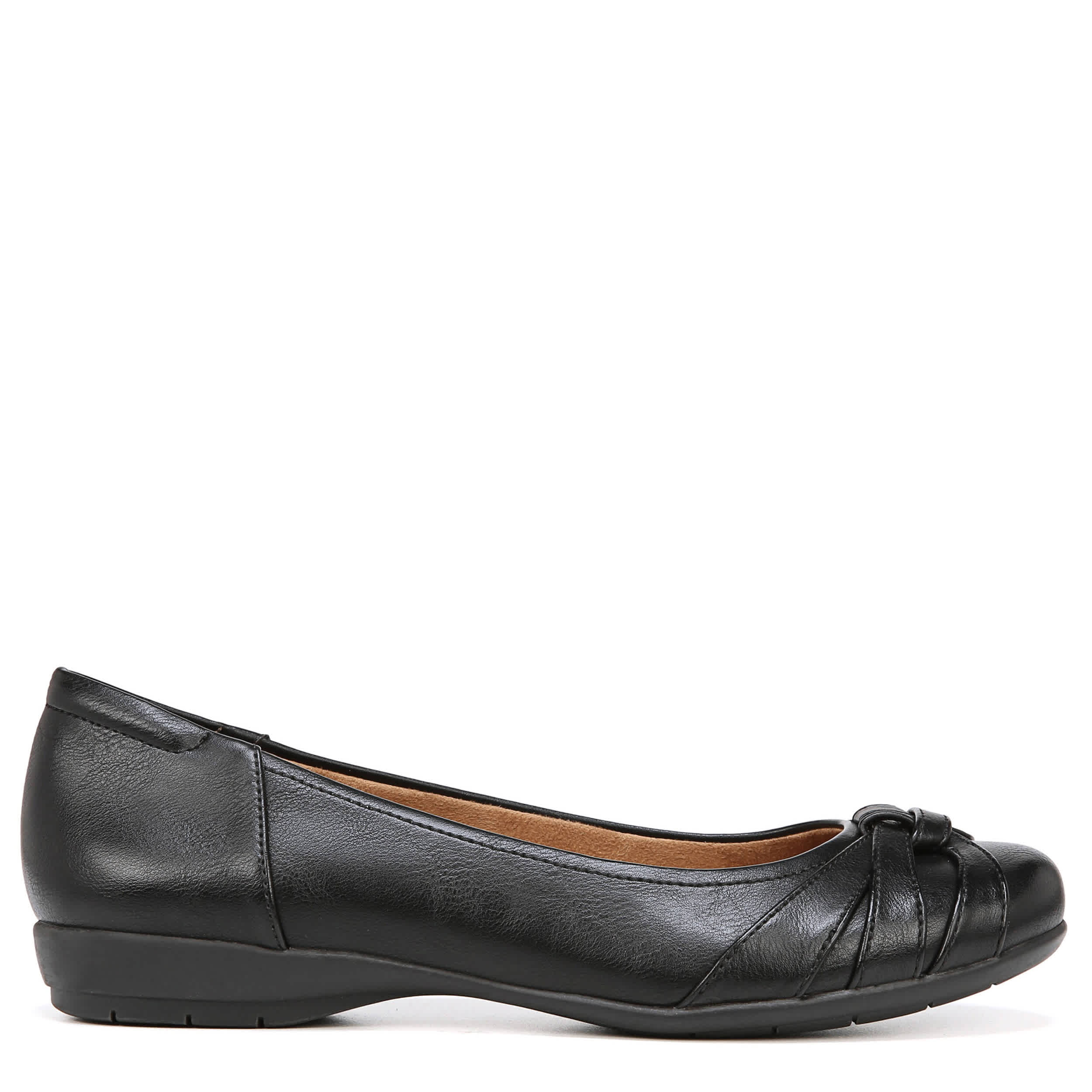The Naturalizer women's Gift flat is as easy to wear as it is to pair with your favorite look. The faux leather construction is accented with a knotted detail at the toe and features a traction outsole for a steady step.