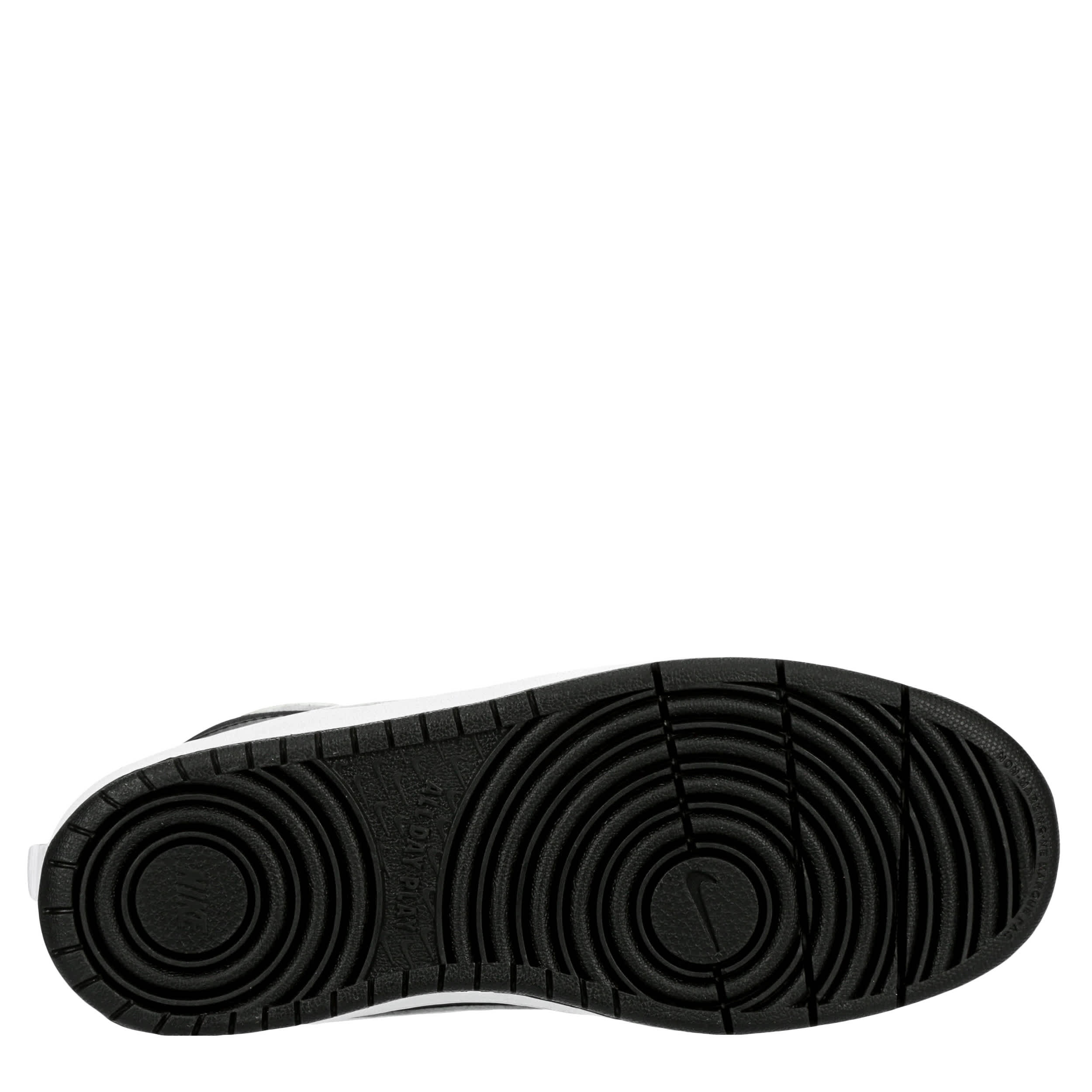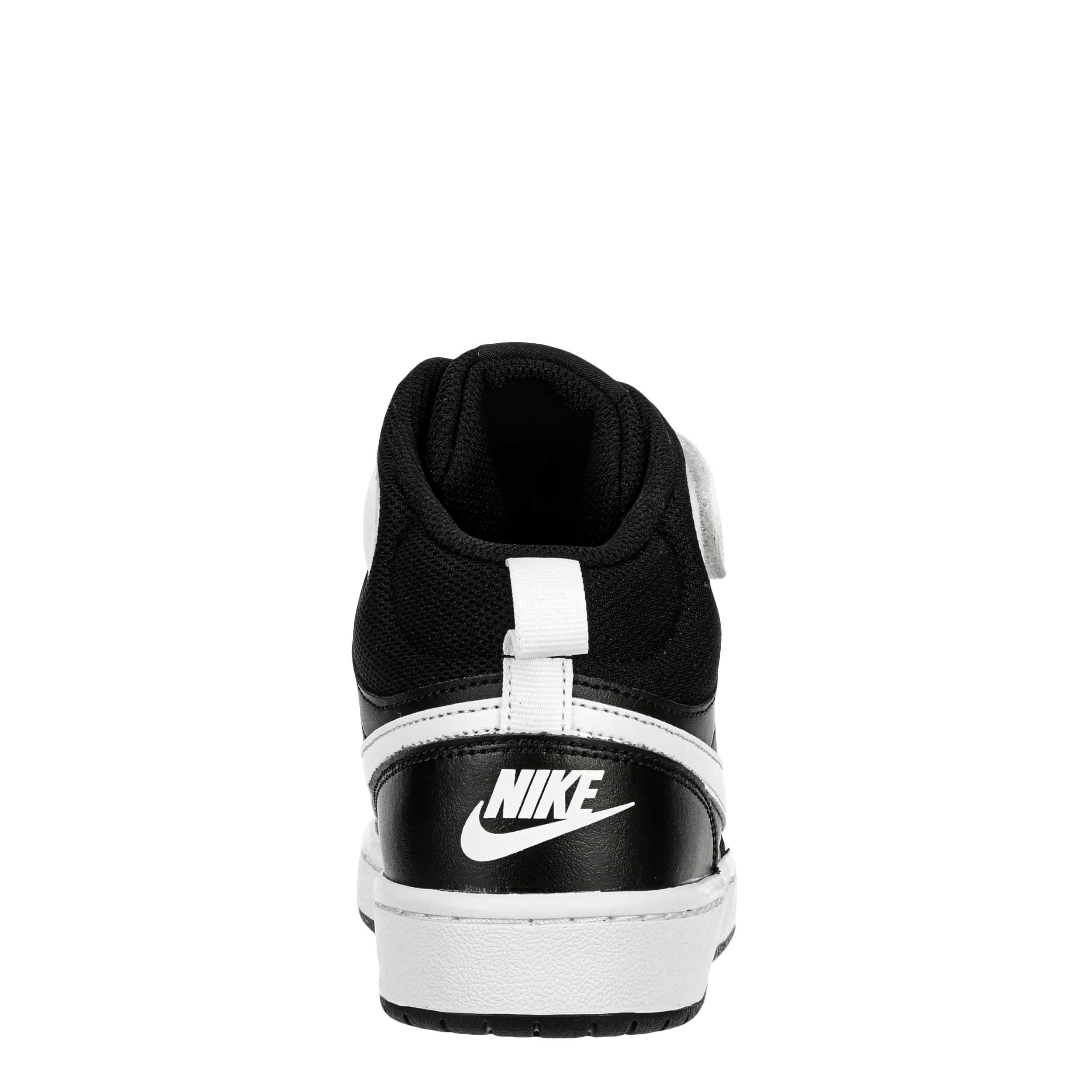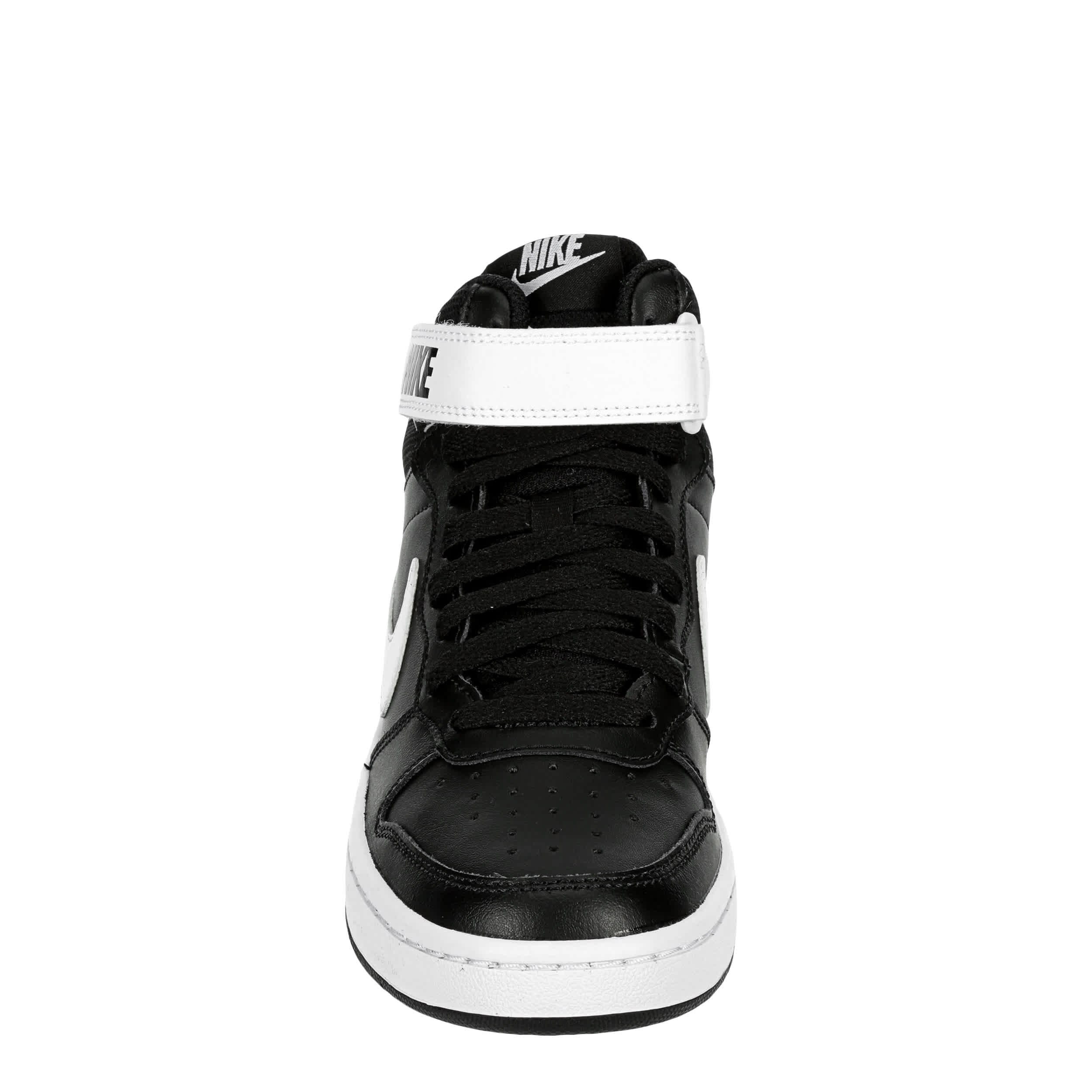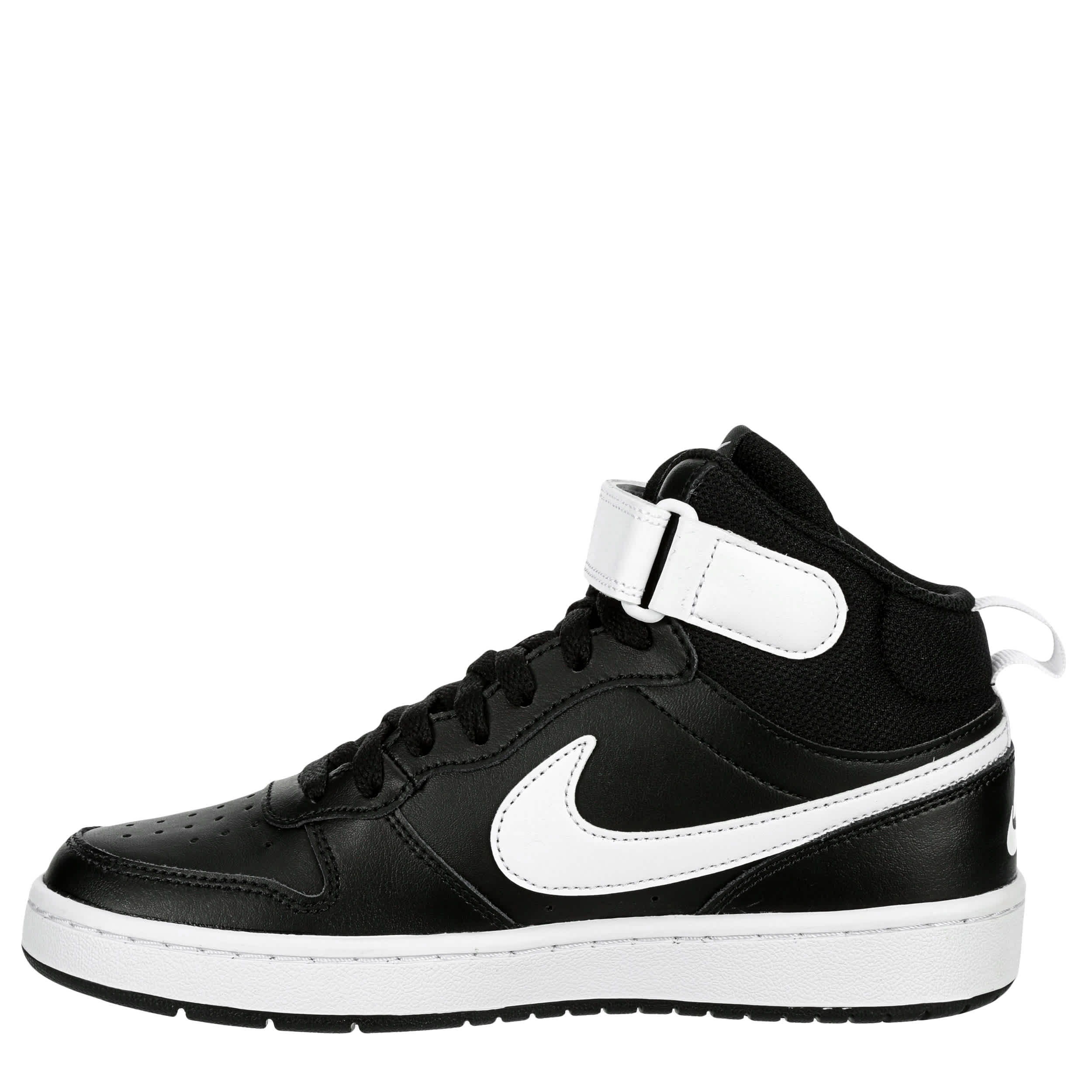 This Nike Court Borough 2 Mid boys' sneaker will make your son the coolest kid in school. The classic Nike swoosh branding with the throwback Velcro ankle strap give this nostalgic sneaker a stylish finish. It's sure to be a big hit with your little baller.