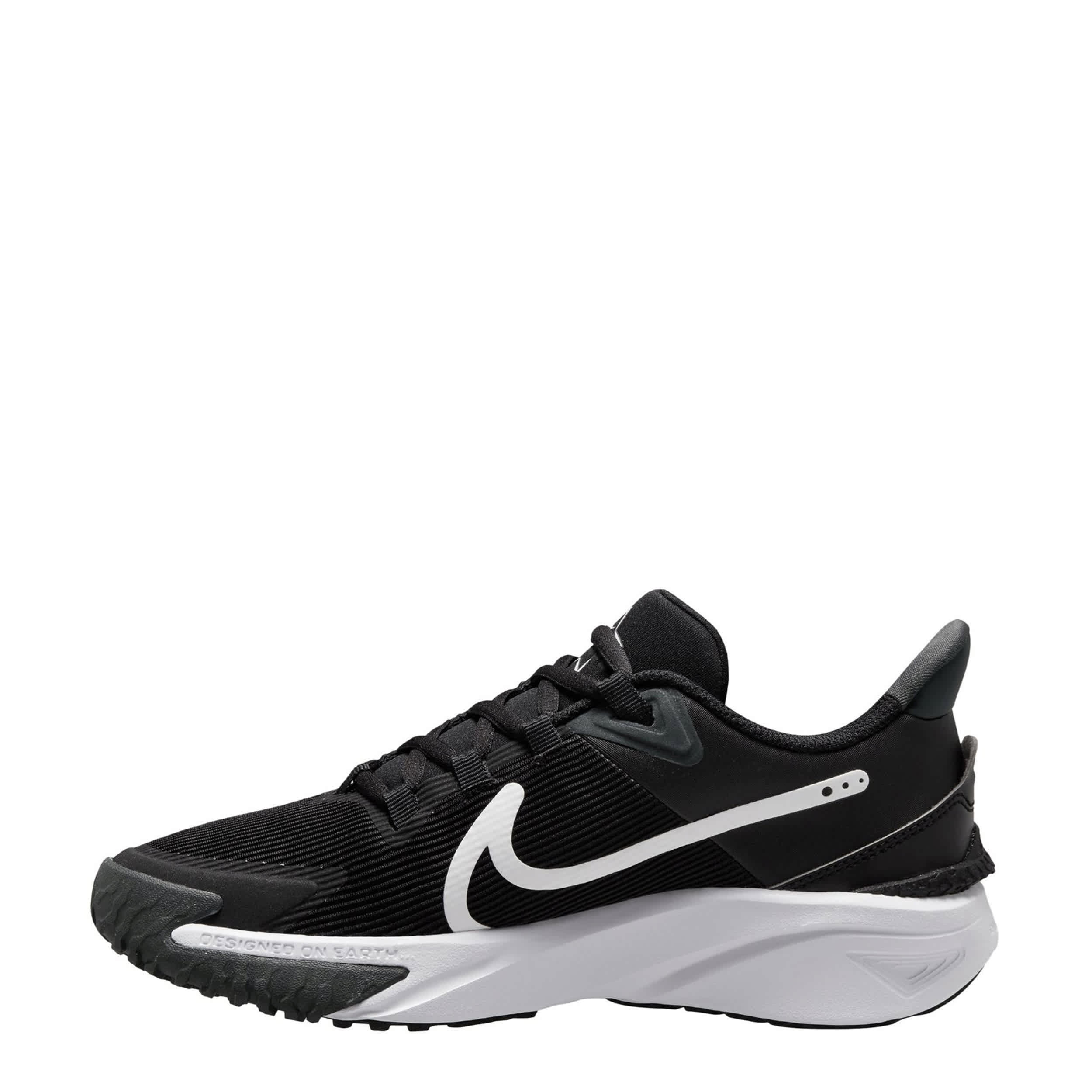 Let him run free in the Nike Star Runner 4 boys' sneaker. With a partially recycled vertical mesh & synthetic upper featuring a durable toe skin, these lace-up shoes have a seamed tongue and heel system for easier entry all summer long. The midsole cushions every step, while the outsole provides extra grip as he stays on the go.