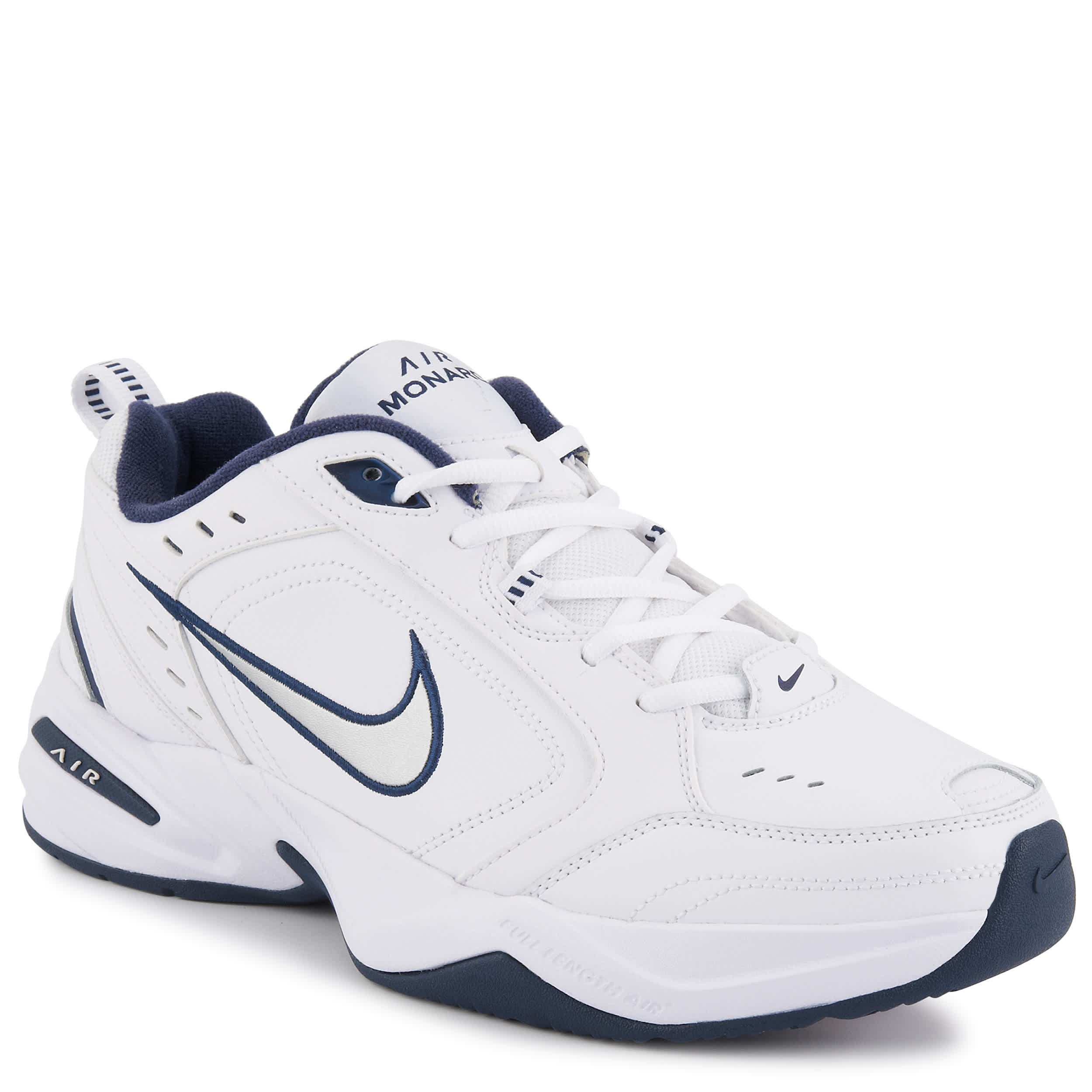 You're king of the cross-training circuit in the Air Monarch IV men's walking shoe from Nike. It's crafted using a supportive blend of leather and synthetic materials, while Air-Sole® cushioning technology provides responsive shock absorption on impact.