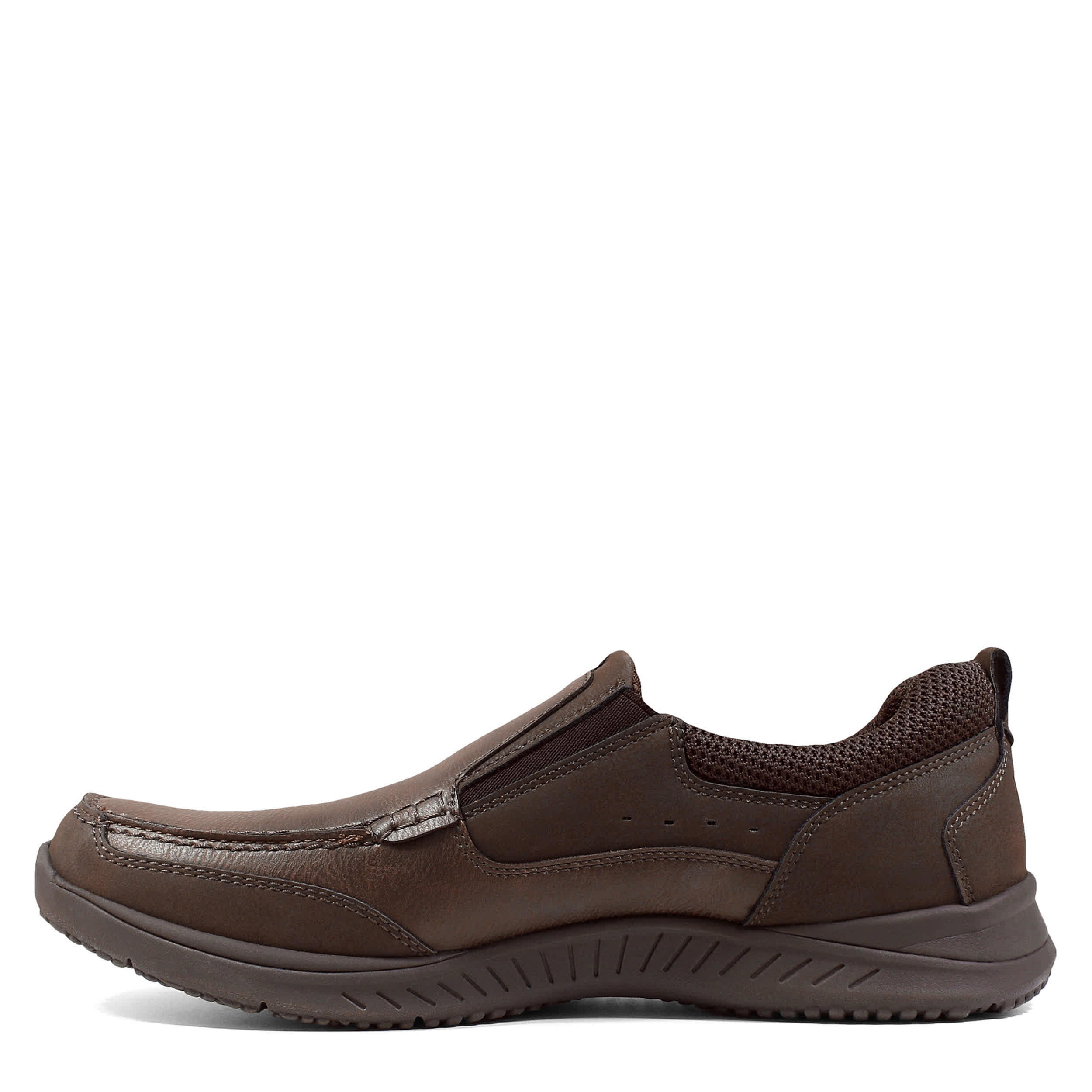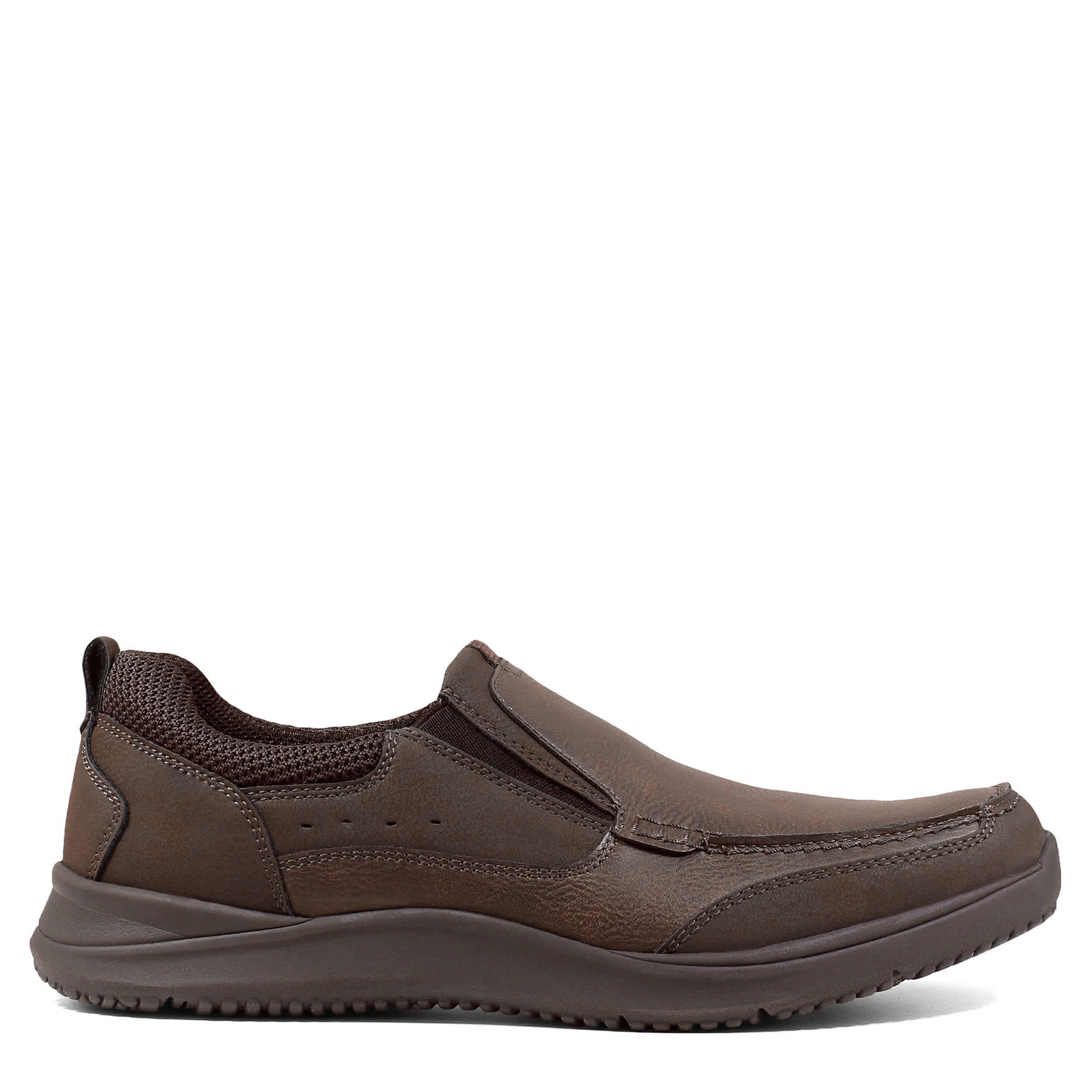 Stay comfortable with this Conway Moc Toe slip-on by Nunn Bush. The leather upper has a moc style with a padded collar and cushioned insole for insane comfort. The elastic gore panels make for quick and easy slip-on entry so you can get moving.