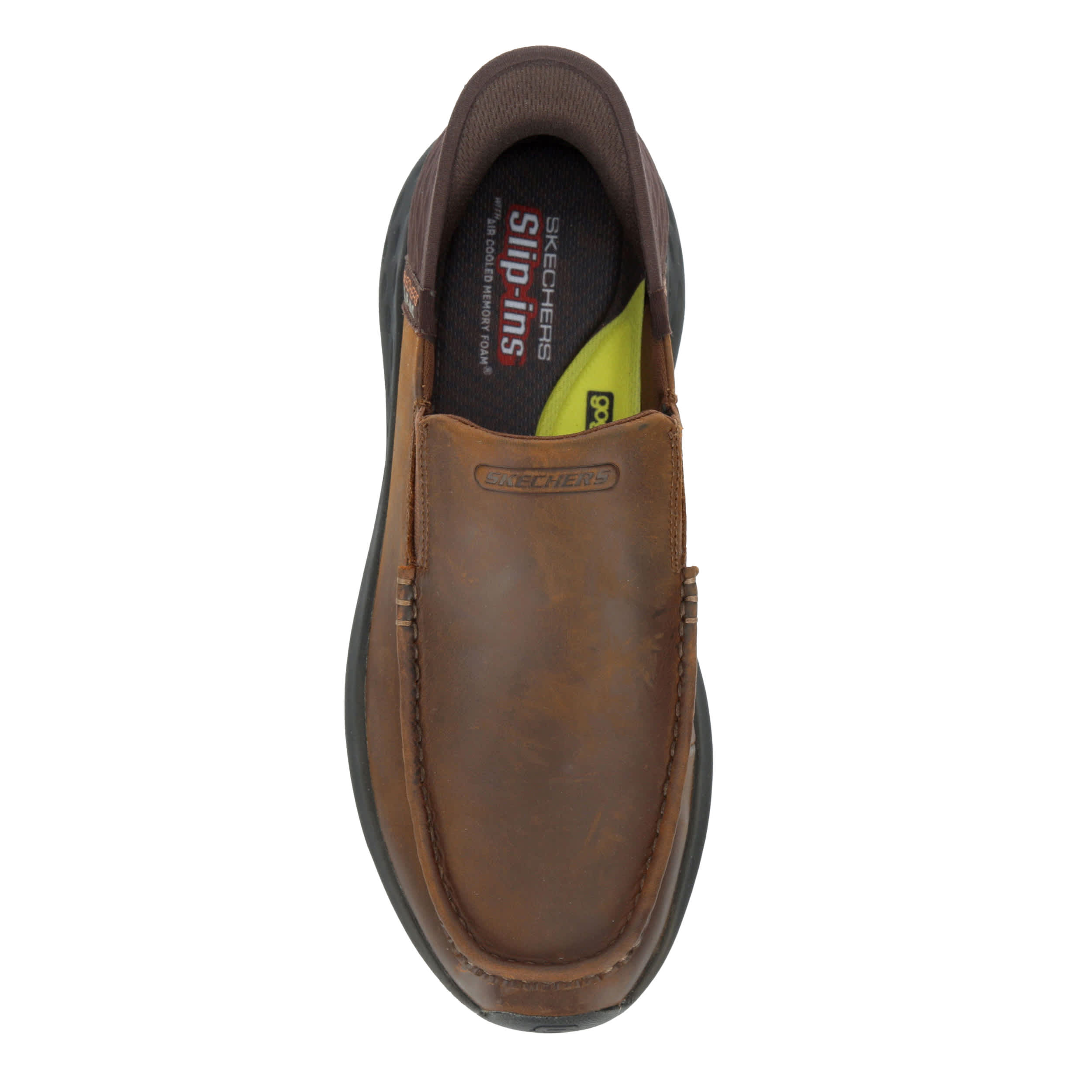 Head into the office or spend the weekend in the Skechers Slip-ins: Parson - Oswin men's sneaker. With a leather upper featuring an Exclusive Heel Pillow for a secure fit, this Skechers Hands Free Slip-in is machine washable for easy maintenance. The Skechers Air-Cooled Memory Foam insole cushions your foot, while the Skechers Goga Mat Arch keeps your steps happy.