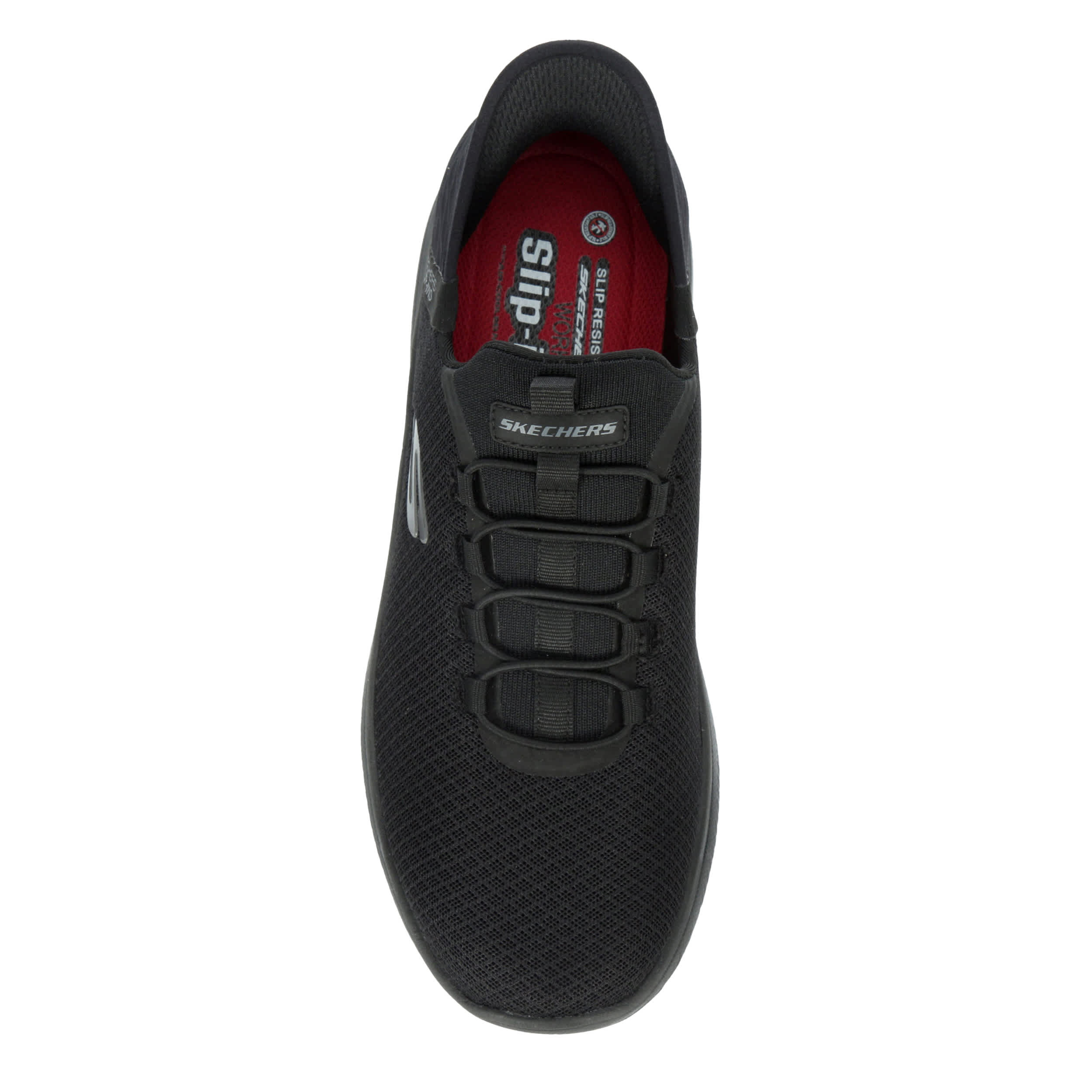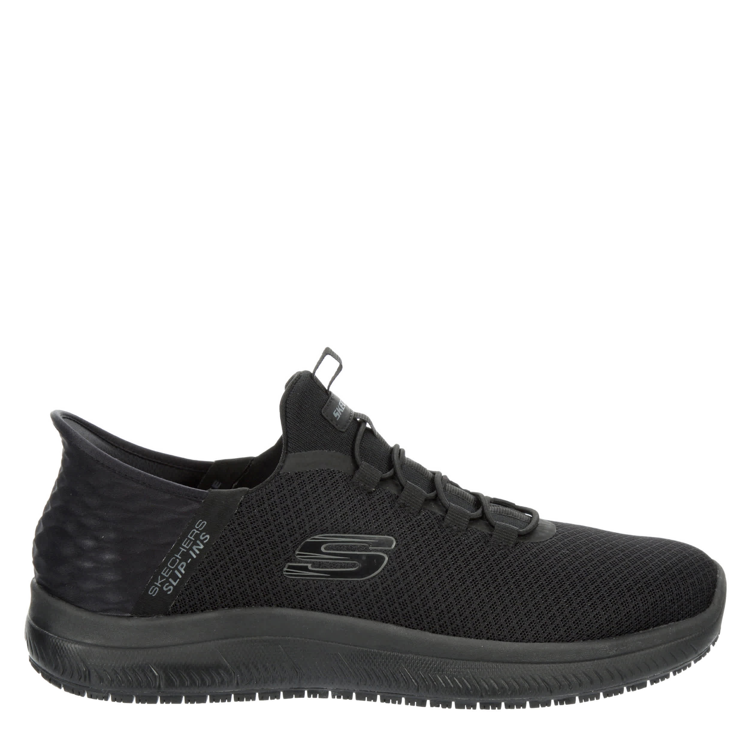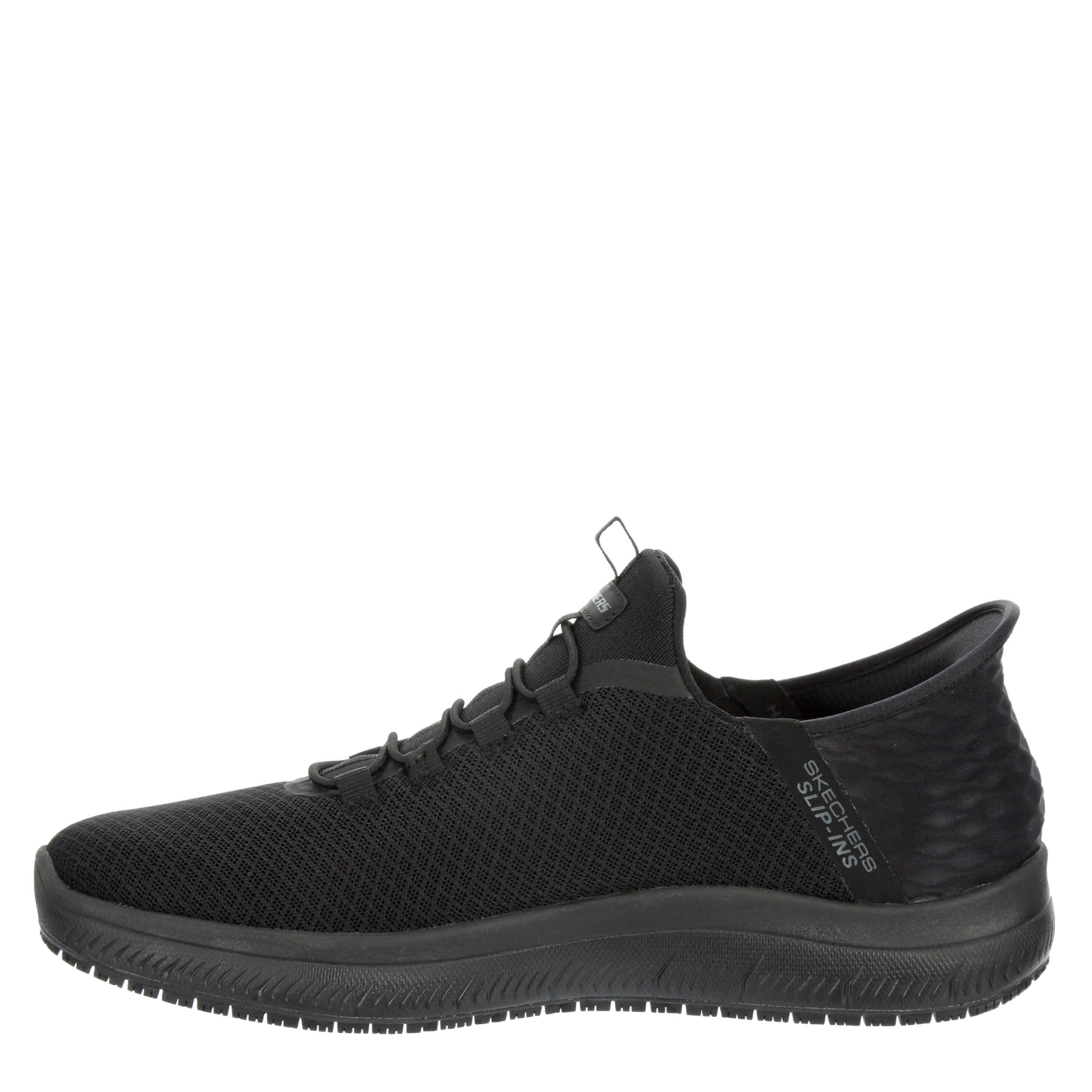 Stay safe on the job in the Skechers Slip-ins: Summits- Colsin men's slip-resistant work shoe. With a knit mesh and synthetic upper featuring stretch laces, this shoe has a molded heel panel and Heel Pillow™ for an easy, secure fit. The Air-Cooled Memory Foam® insole delivers optimal support and cushioning, while the outsole provides excellent traction to prevent slips.
