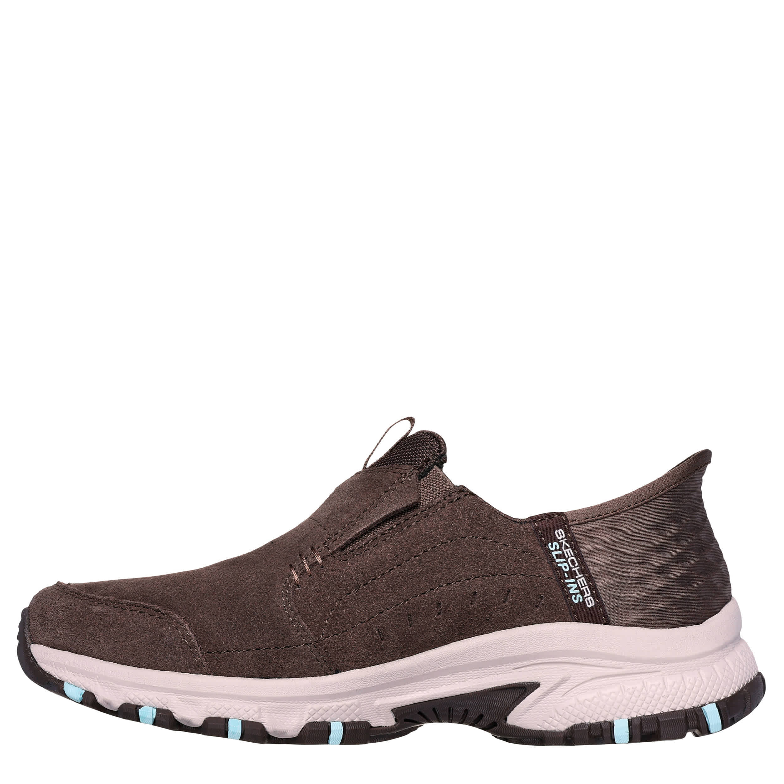 Never trail behind in the Skechers Slip-ins: Hillcrest - Sunapee women's hiking shoe. With a water repellent suede upper featuring the Exclusive Heel Pillowâ„¢, this shoe will accompany you over the next ridge. The Skechers Memory Foamâ„¢ insole cushions every step while the outsole is made for trails with premium outdoor traction.