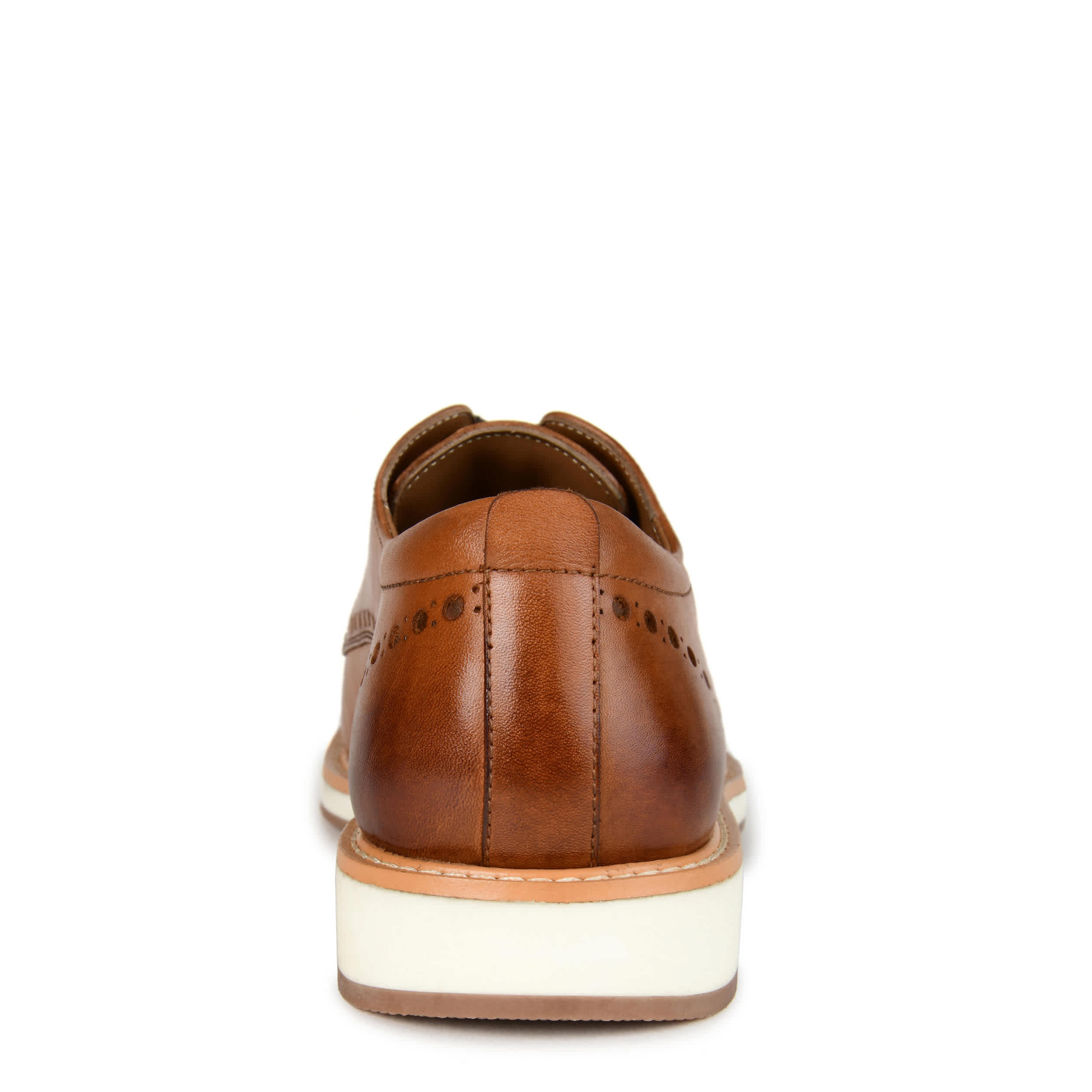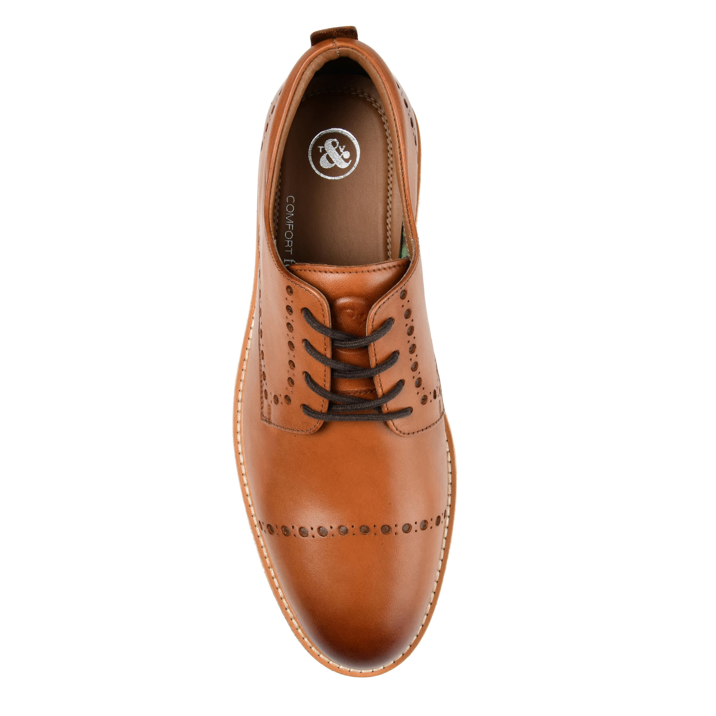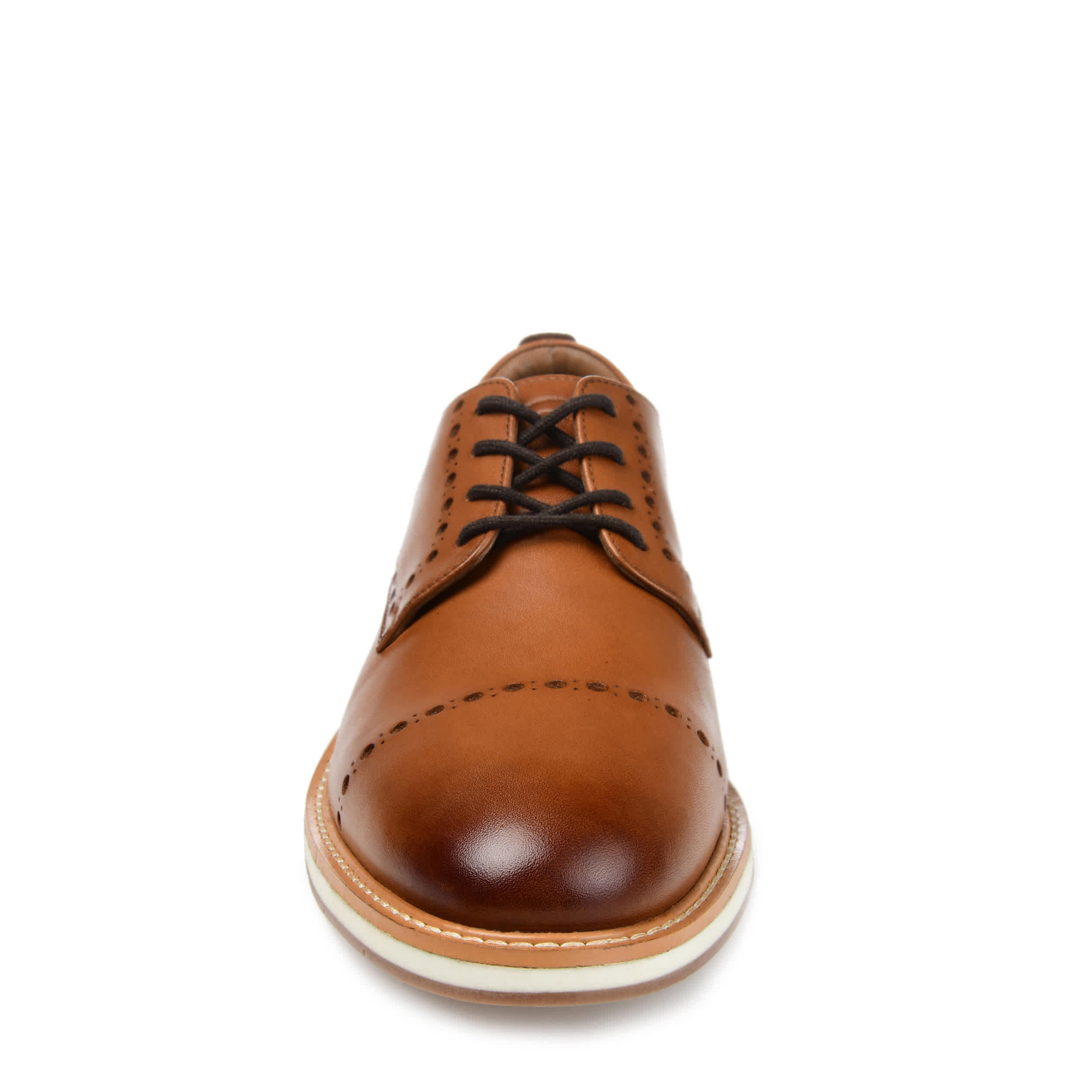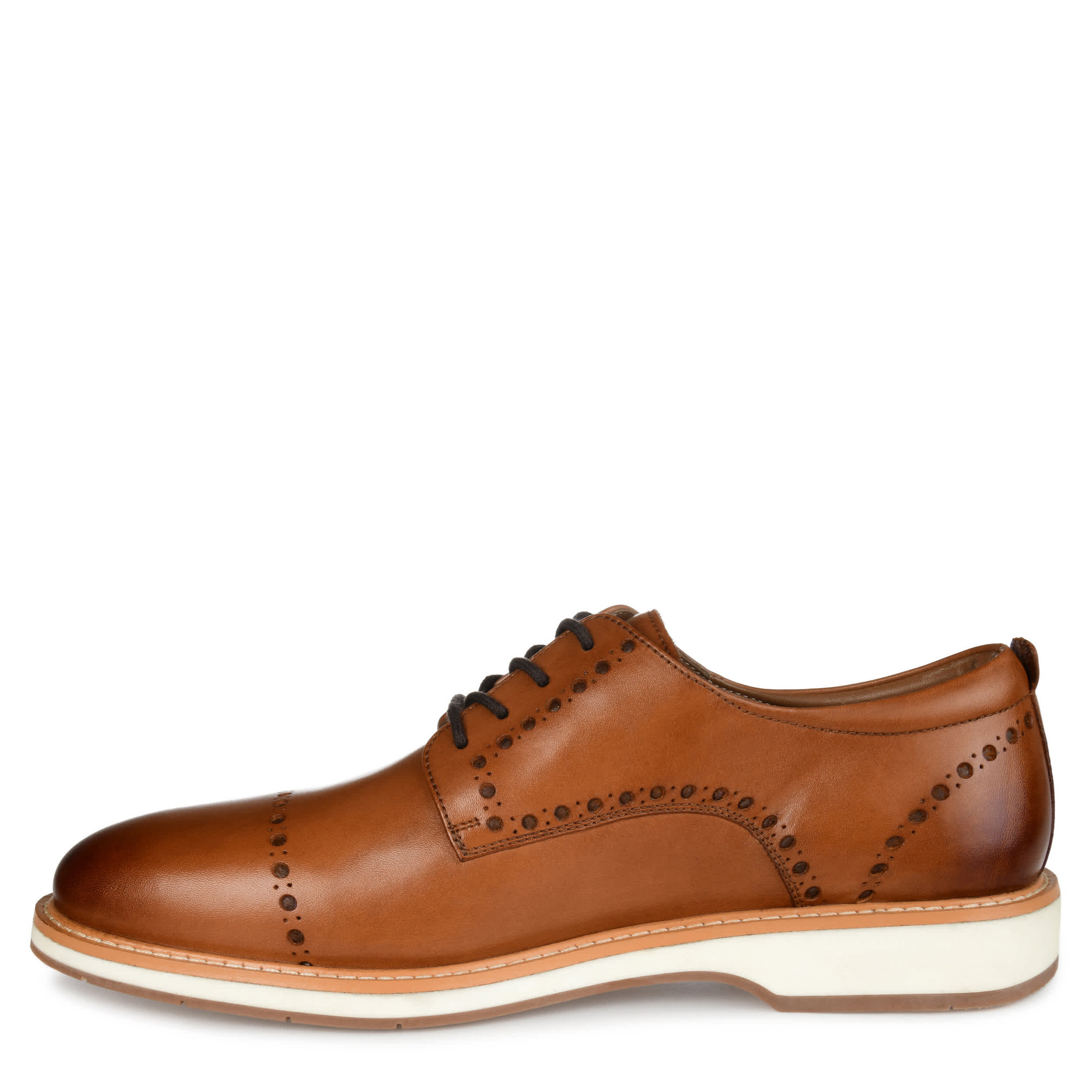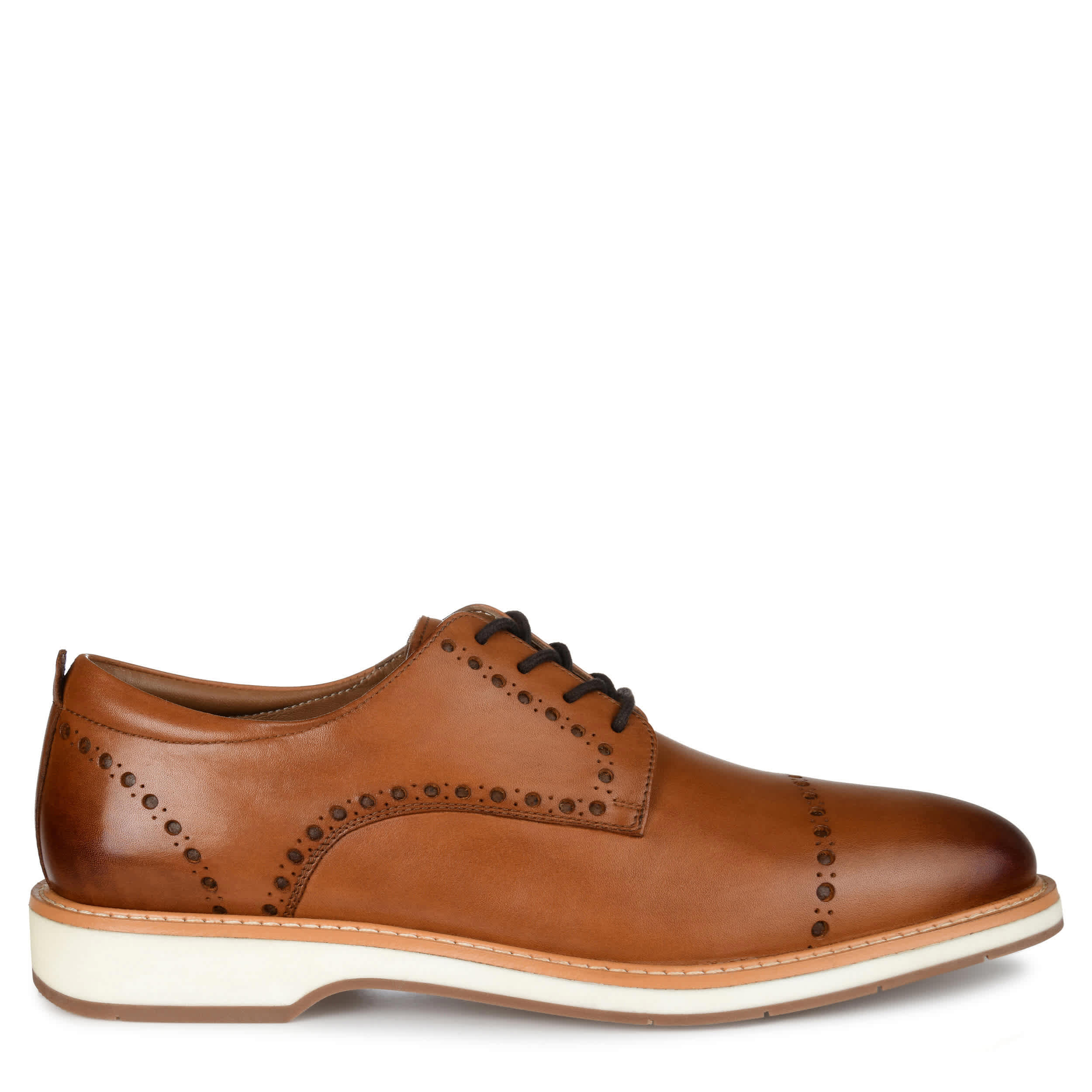 Looking sharp is easy in this men's Fremont Derby dress shoe by Thomas & Vine. Made of genuine leather for lasting durability, this timeless design with brogue detailing and laces match attire for your business day or dressier occasions to a T. The Tru Comfort Foamâ„¢ footbed and EVA sole help you stay comfortable while looking cool and collected.