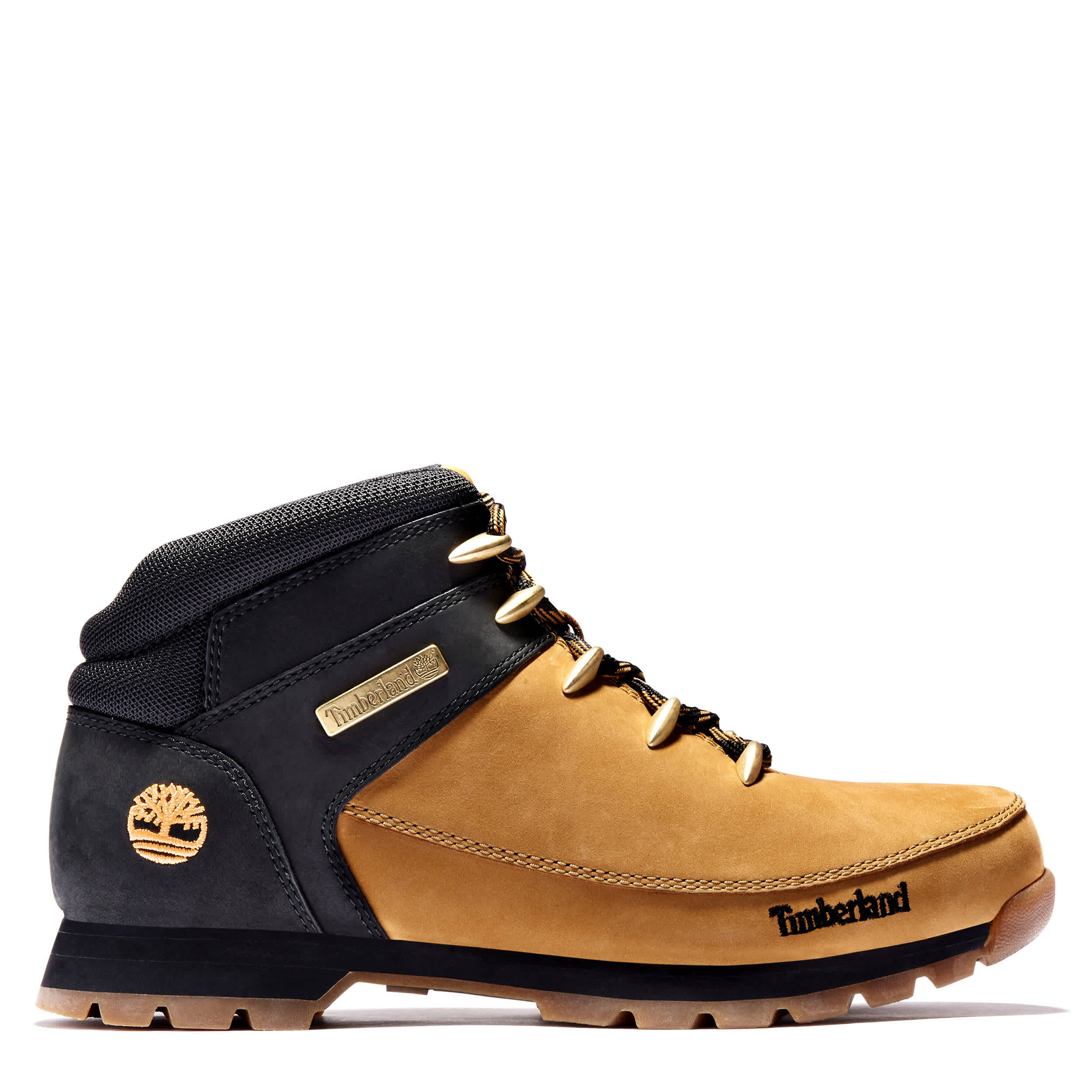 Hit the block or the trails in the Timberland Euro Sprint men's boot. With a synthetic & mesh upper featureing a padded collar for extra comfort, this lace-up boot also has a Timberland logo heel stamp. The cushioned footbed comforts your foot, while the durable lug outsole grips the terrain no matter the weather.