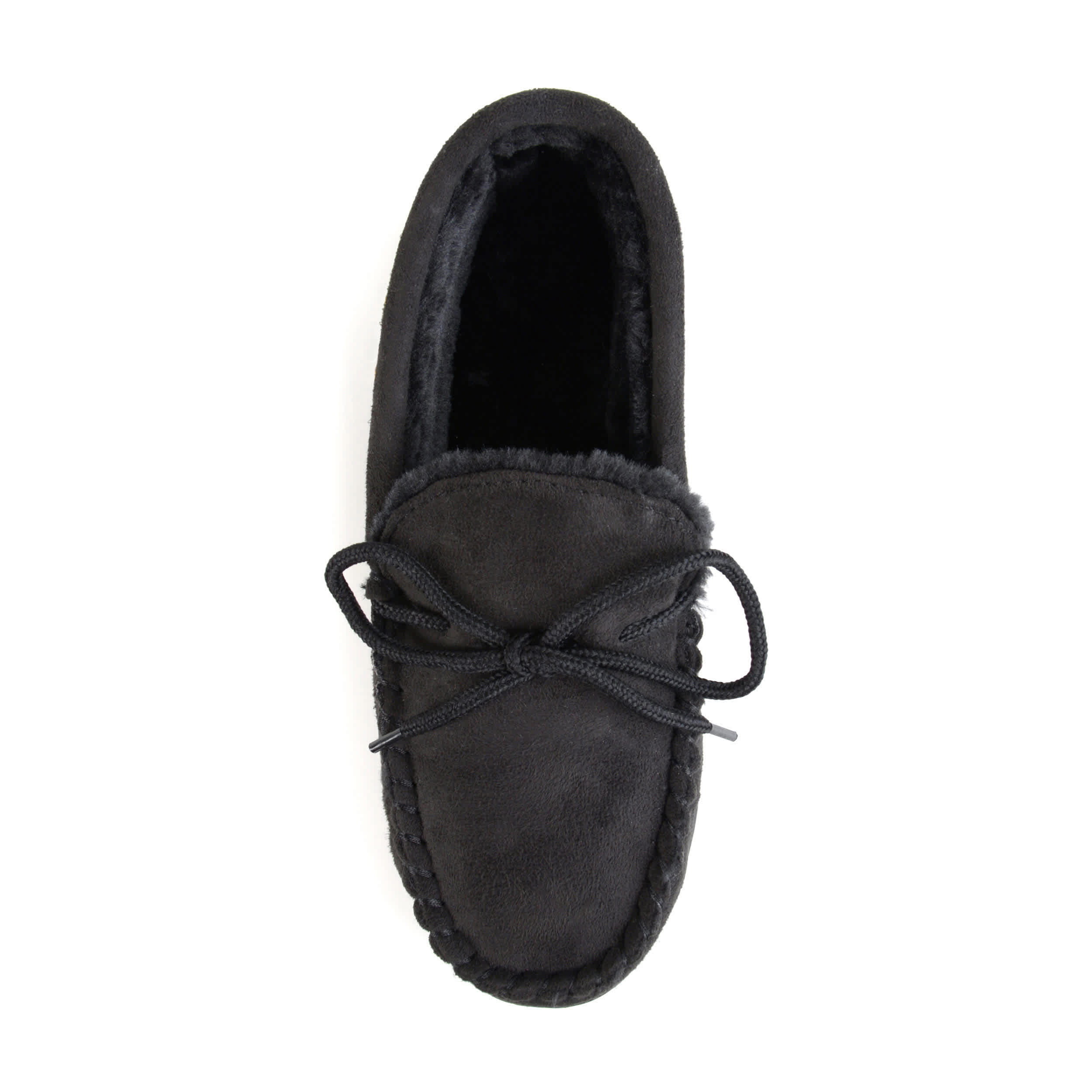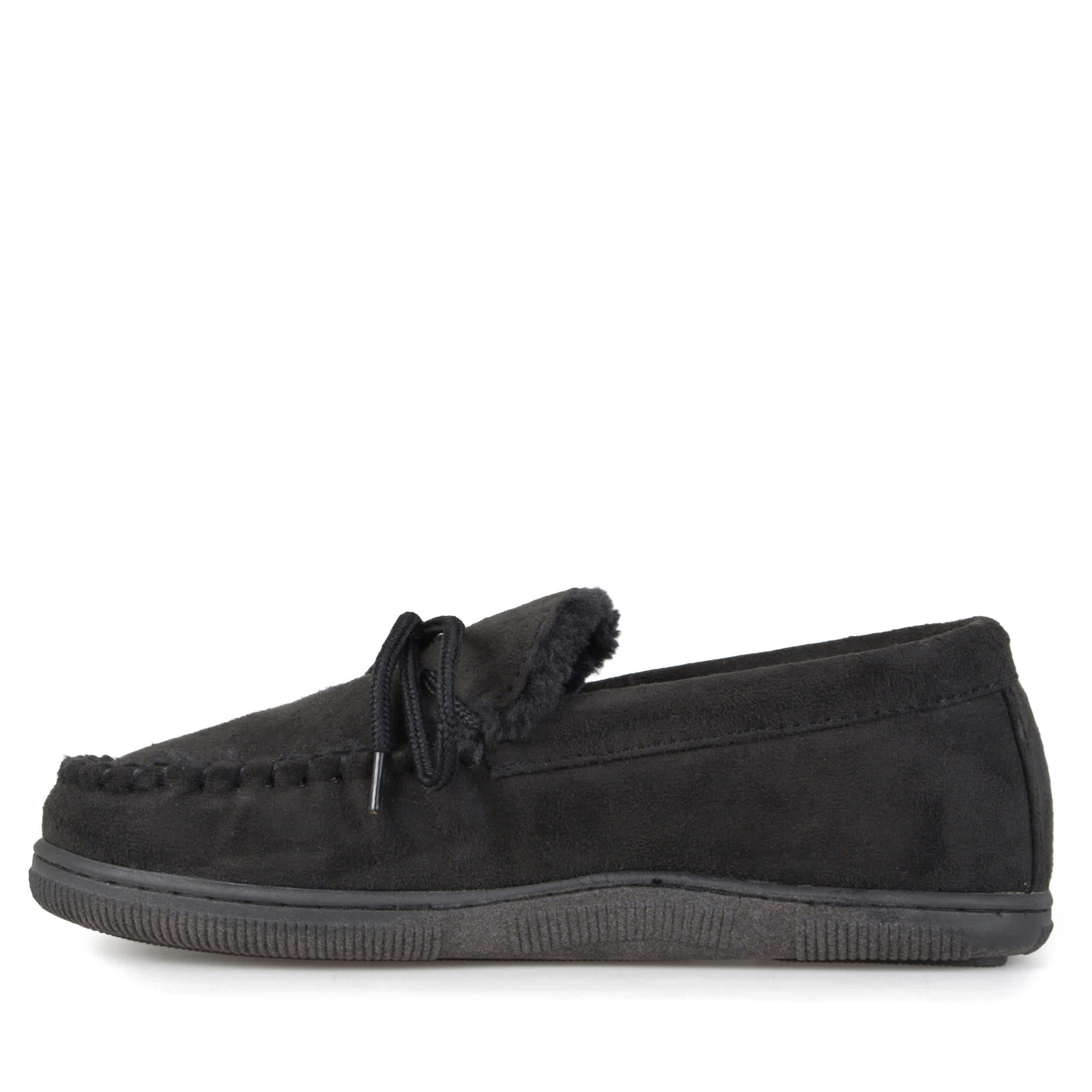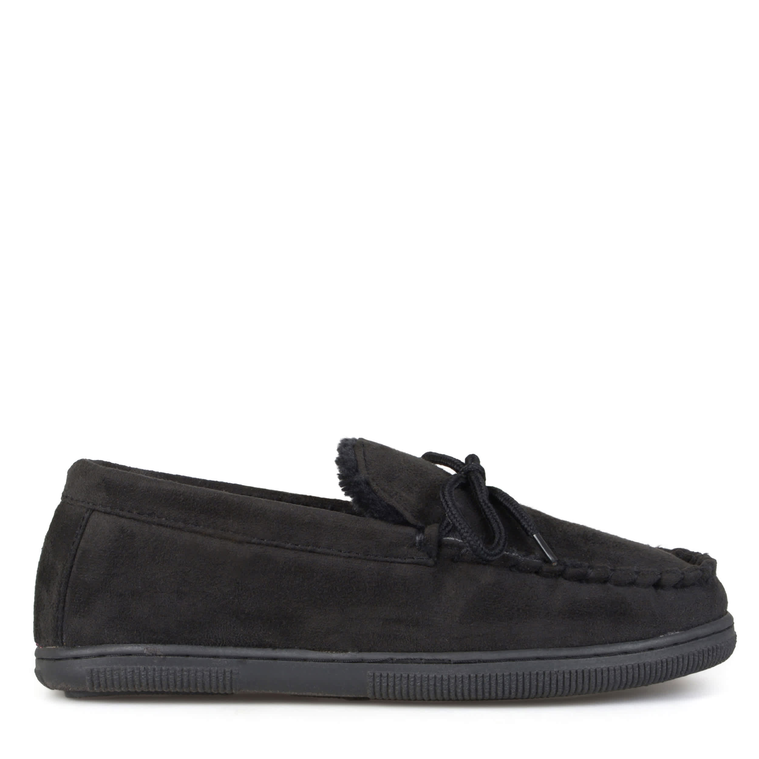 Brew the coffee and settle in with the Vance Co. 212M men's moccasin slipper. Top stitching detail and a classic shoelace bow-tie make this faux suede upper a must-have for cold temps. The faux fur lining with padded insole and rubber outsole keep your feet warm and protected.