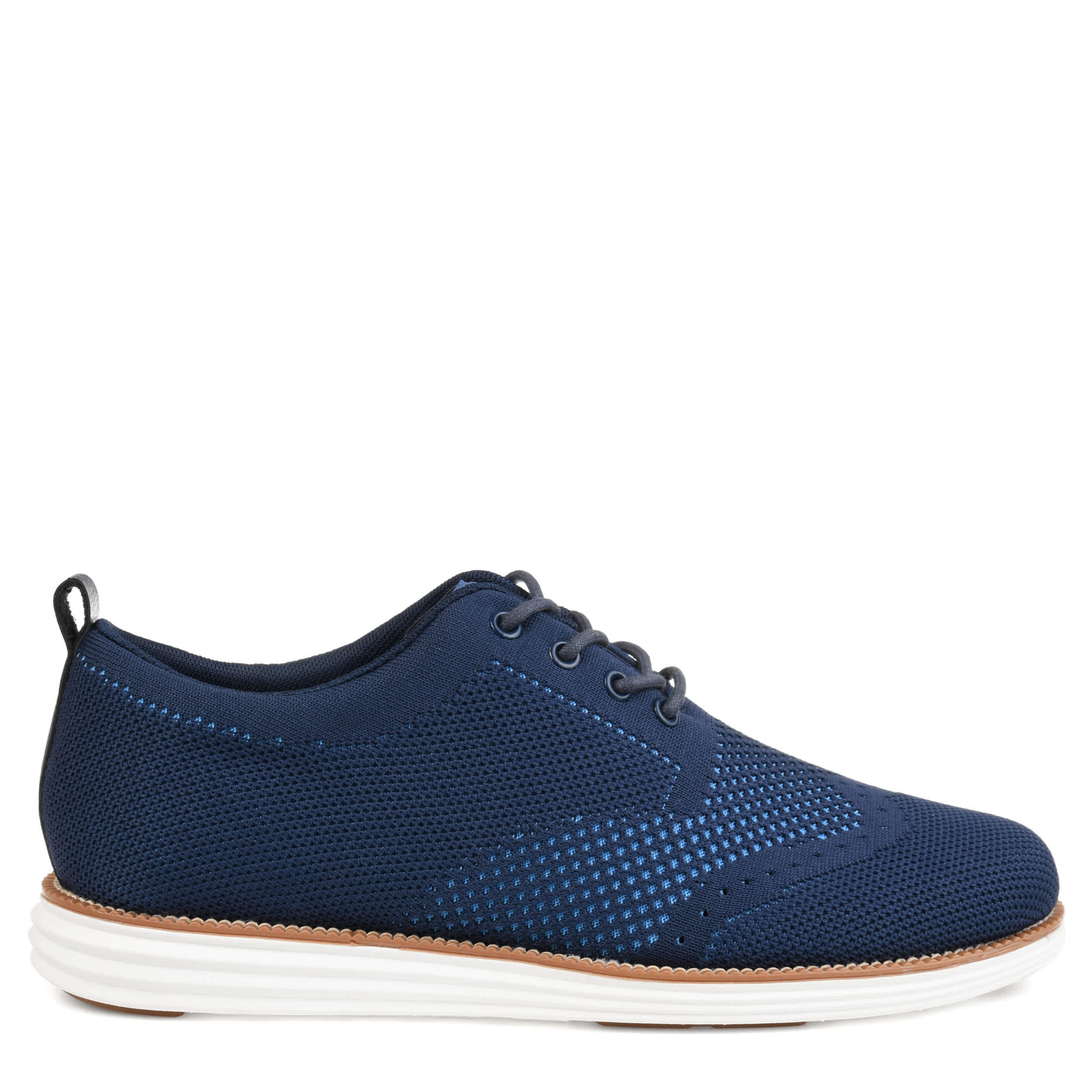 Get ready for the Spring warm-up in the Ezra men's oxford from Vance Co. With a breathable knit fabric upper featuring a padded collar for extra comfort, this lace-up shoe also has a wingtip brogue detailing for a handsome effect. The cushioned insole comforts your steps while the contrast sole allows for some unexpected style as you move confidently.