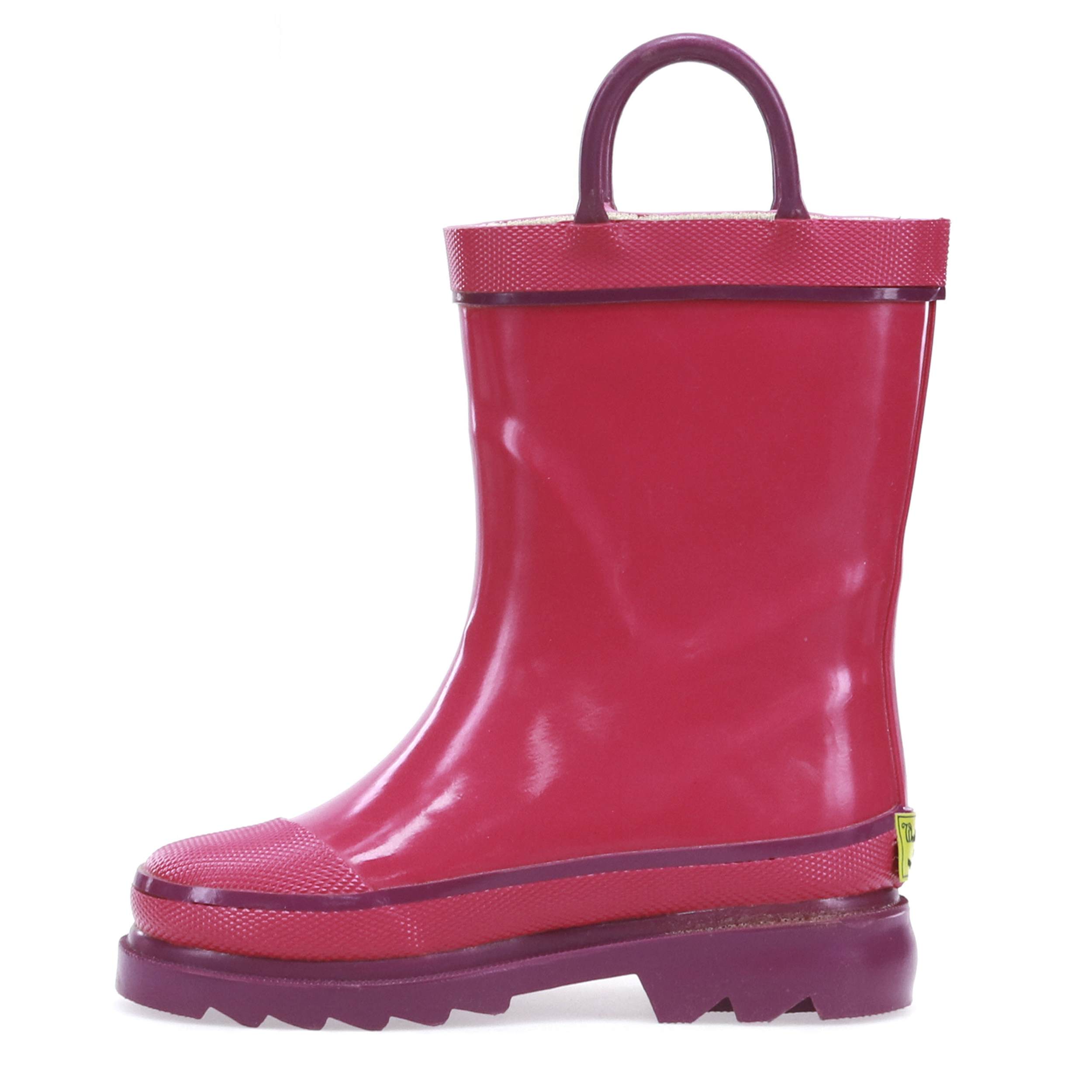 Help her look like a firefighter when the rain hits in the Western Chief Fire Chief 2 infant girls' rain boot. With a waterproof rubber upper featuring a textured cap toe to look like the real thing, this pull-on rain boot keeps little toes dry. The dual pull handles make short work of entry, while the polyester & cotton lining absorbs moisture to soothe her foot for a content time jumping puddles.